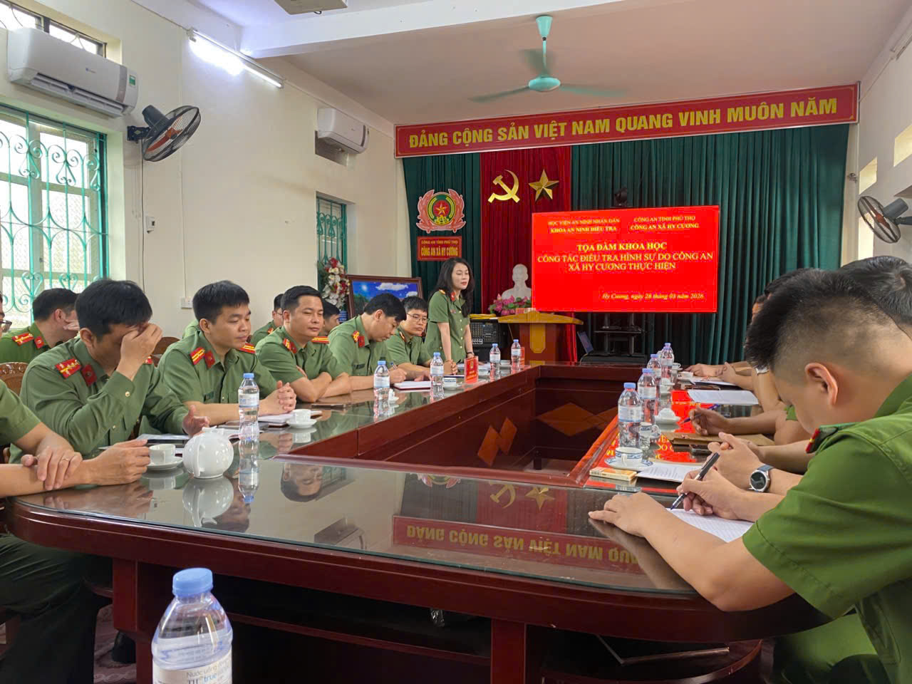 Nhằm trao đổi kinh nghiệm, nâng cao chất lượng công tác điều tra hình sự tại cơ sở, ngày 28/3/2026, Công an xã Hy Cương phối hợp với Khoa An ninh điều tra, Học viện An ninh nhân dân tổ chức tọa đàm khoa học về công tác điều tra hình sự do Công an cấp xã thực hiện.