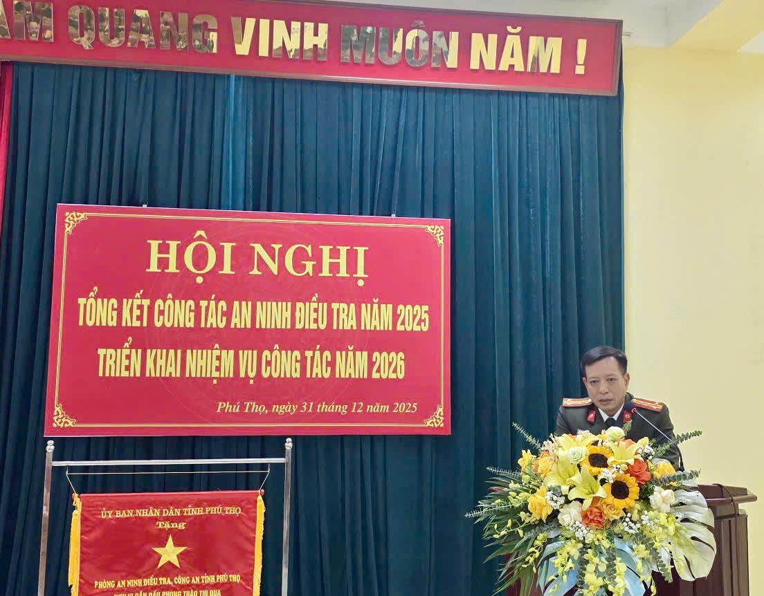 Chiều ngày 31/12/2025, Phòng An ninh điều tra - Công an tỉnh Phú Thọ tổ chức Hội nghị tổng kết công tác năm 2025, triển khai nhiệm vụ công tác năm 2026. Đặc biệt, Hội nghị diễn ra đúng vào dịp kỷ niệm 74 năm Ngày truyền thống của lực lượng An ninh điều tra (31/12/1951 - 31/12/2025). Dự và chỉ đạo Hội nghị có đồng chí Đại tá Lâm Văn Vinh - Phó Giám đốc, Thủ trưởng Cơ quan An ninh điều tra Công an tỉnh. Cùng dự có đại diện Cục A09 - Bộ Công an, lãnh đạo các phòng nghiệp vụ Công an tỉnh và toàn thể cán bộ, chiến sĩ Phòng An ninh điều tra.