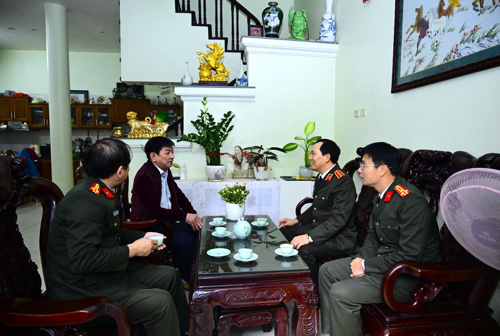 Thay mặt Đảng ủy Công an Trung ương, lãnh đạo Bộ Công an, Thứ trưởng Lê Văn Tuyến đã ân cần thăm hỏi, gửi lời kính chúc sức khỏe, chúc Tết gia đình, thân nhân các đồng chí cố lãnh đạo Bộ; bày tỏ sự trân trọng về những cống hiến to lớn của các đồng chí lãnh đạo Bộ qua các thời kỳ đã góp phần quan trọng vào sự nghiệp cách mạng nói chung, sự nghiệp bảo vệ an ninh quốc gia, giữ gìn trật tự, an toàn xã hội và xây dựng lực lượng Công an nhân dân nói riêng…