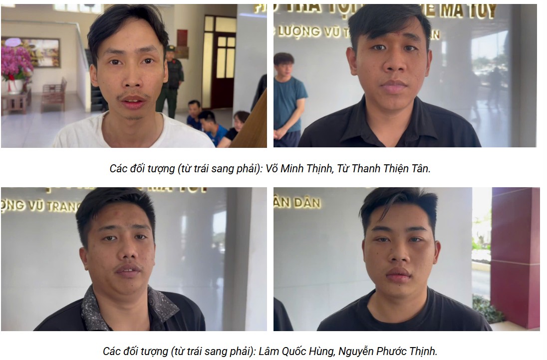 Theo kết quả điều tra ban đầu, các đối tượng trên đã nhận ma túy từ khu vực biên giới tiếp giáp Campuchia và tỉnh Tây Ninh, sau đó mang về các xã thuộc tỉnh Tây Ninh tiếp giáp Thành phố Hồ Chí Minh cất giấu, phân chia và giao cho các đầu mối tiêu thụ. Trong đó, Võ Minh Thịnh giữ vai trò điều hành chính, trực tiếp nhận và phân phối ma túy; Từ Thanh Thiện Tân; Lâm Quốc Hùng và Nguyễn Phước Thịnh tham gia hỗ trợ cất giấu, đóng gói và vận chuyển ma tuý giao cho các đầu mối tiêu thụ.