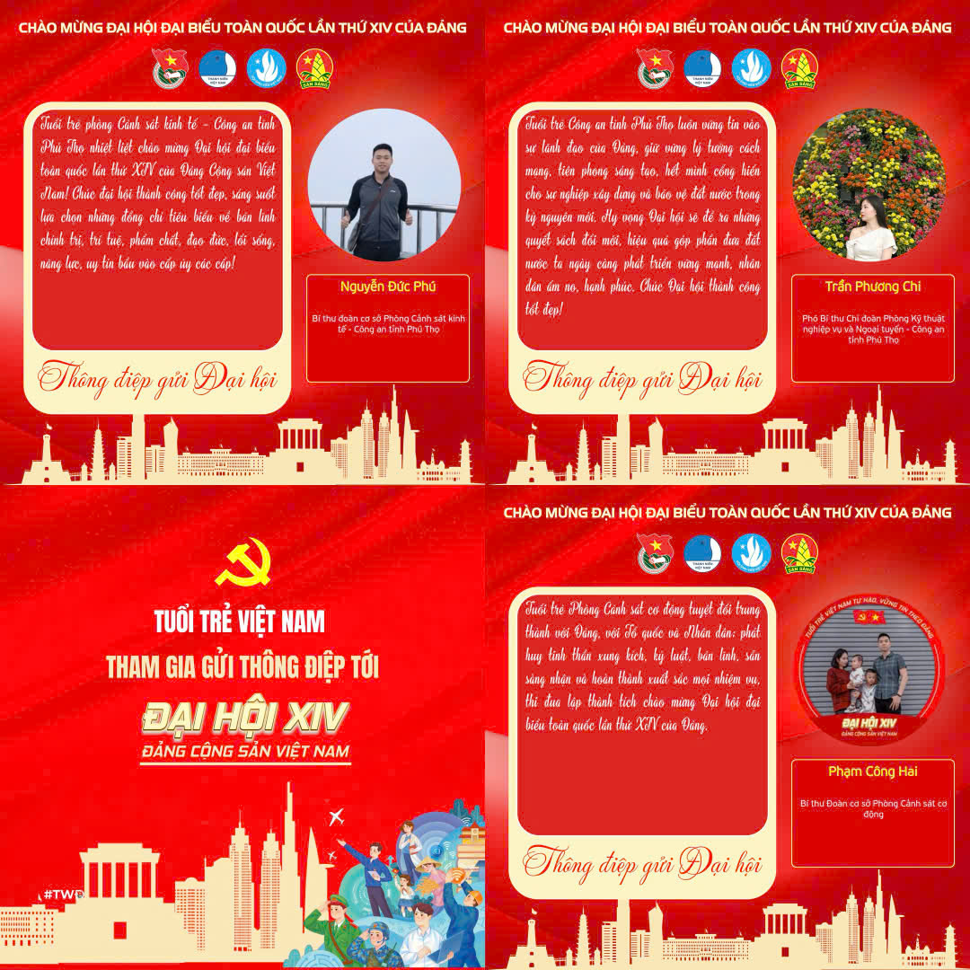 Hưởng ứng Chiến dịch “Gửi Thông điệp tới Đại hội đại biểu toàn quốc lần thứ XIV của Đảng” do Trung ương Đoàn TNCS Hồ Chí Minh phát động, đoàn viên, thanh niên Công an tỉnh Phú Thọ đã tích cực tham gia, gửi gắm những kỳ vọng, niềm tin và khát vọng cống hiến của tuổi trẻ lực lượng Công an nhân dân đối với Đại hội.