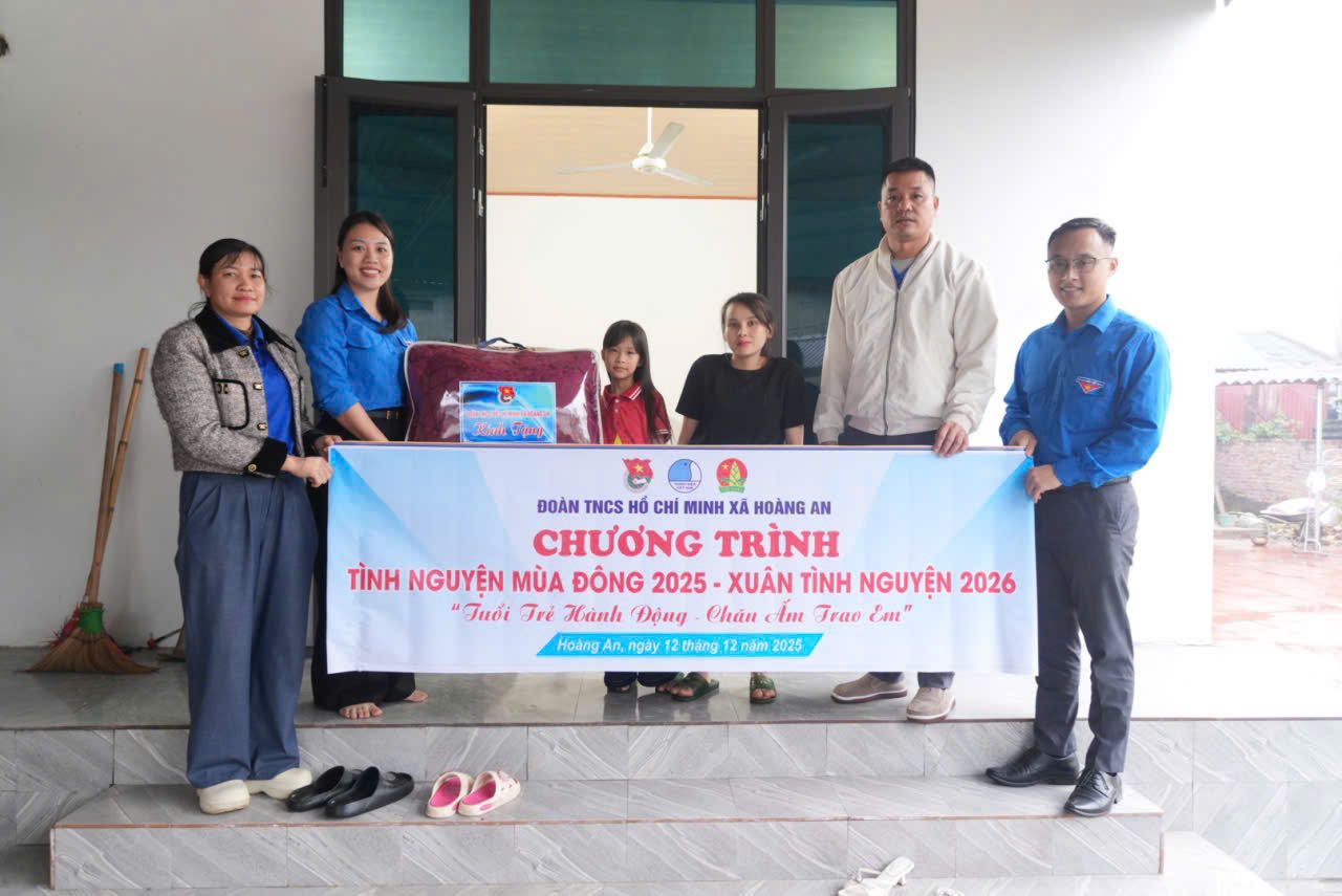 Thiết thực tổ chức các hoạt động an sinh xã hội, chăm lo cho học sinh có hoàn cảnh khó khăn trên địa bàn, chiều ngày 12/12/2025, tại Hội trường Đảng ủy xã Hoàng An, Đoàn Thanh niên Công an xã Hoàng An phối hợp với Đoàn Thanh niên Cộng sản Hồ Chí Minh xã Hoàng An tổ chức chương trình “Tình nguyện mùa đông 2025 - Xuân tình nguyện 2026” với chủ đề “Tuổi trẻ hành động - Chăn ấm trao em”.