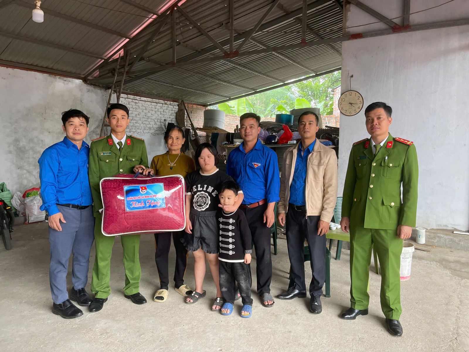 Công an xã Hoàng An phối hợp với tổ chức Đoàn thanh niên trao quà cho các em có hoàn cảnh khó khăn