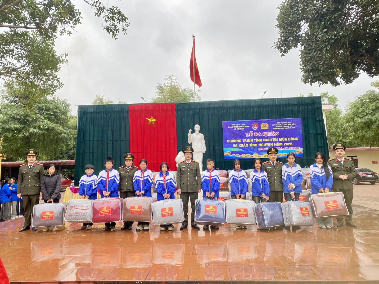 Chiều ngày 22/01/2026, tại Trường Trung học cơ sở Võ Miếu, Chi đoàn Công an xã Võ Miếu phối hợp với Chi đoàn Phòng Quản lý xuất nhập cảnh Công an tỉnh Phú Thọ và Đoàn Thanh niên xã Võ Miếu tổ chức lễ ra quân Chương trình “Tình nguyện mùa đông - Xuân tình nguyện năm 2026”. Chương trình thu hút sự tham gia tích cực của đoàn viên thanh niên các đơn vị, thể hiện tinh thần xung kích, trách nhiệm của tuổi trẻ lực lượng Công an trong công tác an sinh xã hội, chăm lo thế hệ tương lai.