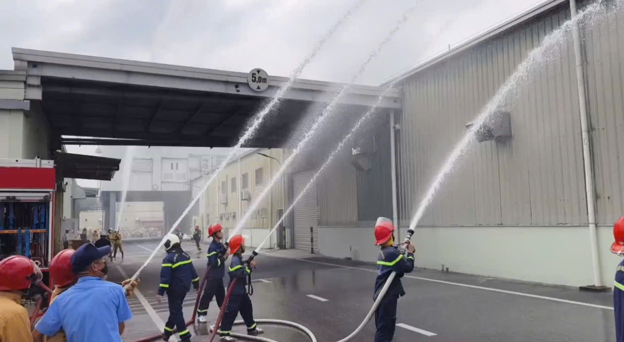 Sau phần lý thuyết, cán bộ và công nhân viên Công ty Toyota Boshoku đã tham gia diễn tập phương án chữa cháy với tình huống giả định xảy ra cháy tại khu vực sản xuất, nơi tập trung lượng vật tư lớn, dễ cháy. Nguyên nhân giả định được xác định do sự cố chập điện. Ngay khi phát hiện sự cố, đội PCCC cơ sở tiến hành báo động, ngắt điện khu vực, triển khai lực lượng và phương tiện dập lửa tại chỗ, đồng thời tổ chức hướng dẫn công nhân thoát nạn, di chuyển tài sản ra khu vực an toàn và thông báo cho lực lượng chức năng qua số 114.