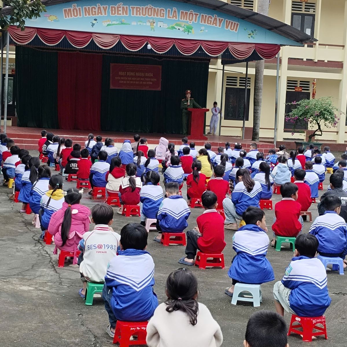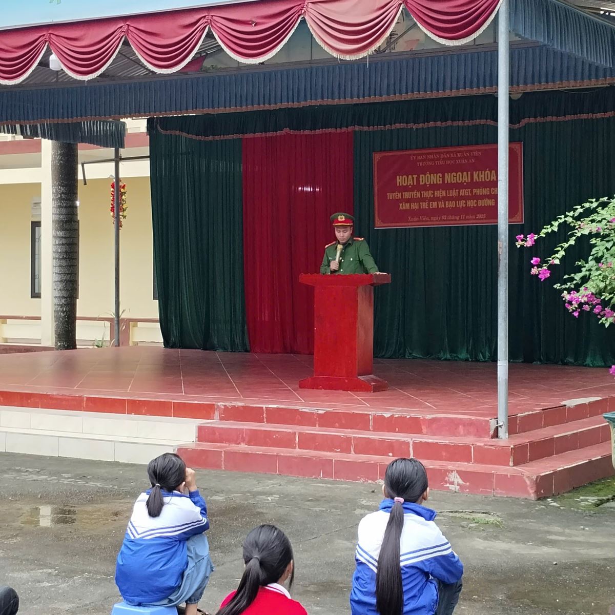 Nhằm tăng cường công tác phổ biến, giáo dục pháp luật trong trường học, ngày 03/11/2025, Công an xã Xuân Viên phối hợp với Ban Giám hiệu Trường Tiểu học Xuân An tổ chức buổi ngoại khóa tuyên truyền về trật tự an toàn giao thông, phòng chống xâm hại trẻ em và bạo lực học đường.