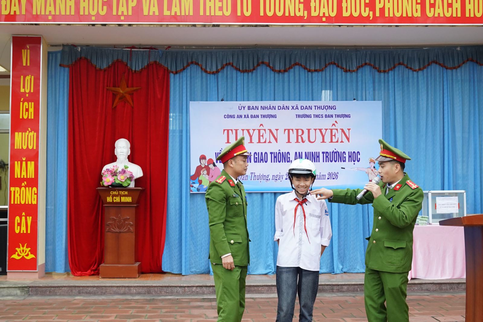 Nhằm nâng cao ý thức chấp hành pháp luật, trang bị kiến thức và kỹ năng cần thiết cho học sinh, góp phần xây dựng môi trường học đường an toàn, Công an xã Đan Thượng đã phối hợp với Trường THCS Đan Thượng tổ chức tuyên truyền, phổ biến pháp luật về trật tự an toàn giao thông và phòng cháy, chữa cháy.