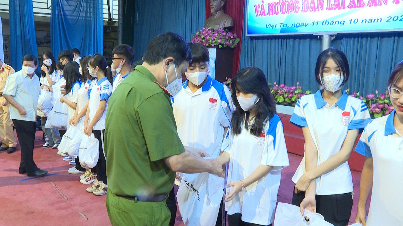 Nhân dịp này, Phòng cảnh sát giao thông đã trao tặng 60 mũ bảo hiểm cho tập thể ban giám hiệu, giáo viên và học sinh trong nhà trường./.