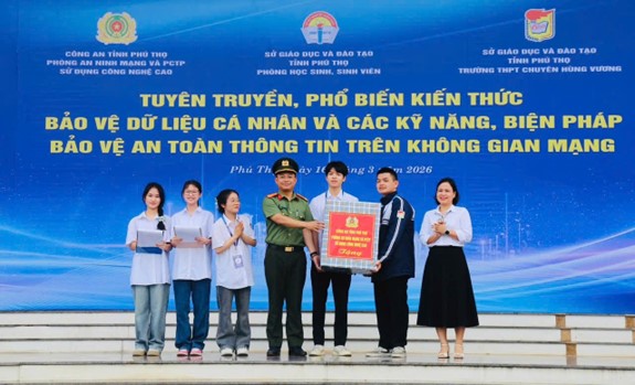Sáng 16/3/2026, Phòng An ninh mạng và phòng, chống tội phạm sử dụng công nghệ cao, Công an tỉnh Phú Thọ phối hợp với Sở Giáo dục và đào tạo tỉnh, Trường THPT Chuyên Hùng Vương tổ chức tuyên truyền phổ biến kiến thức bảo vệ dữ liệu cá nhân và các kỹ năng, biện pháp bảo vệ thông tin trên không gian mạng.