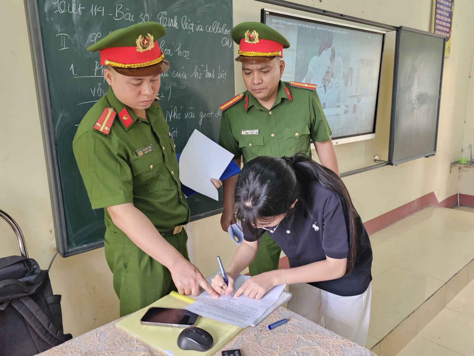 Không chỉ dừng lại ở tuyên truyền, Công an xã Bằng Luân đã tổ chức cho học sinh và giáo viên ký cam kết không sử dụng thuốc lá điện tử. Hoạt động này góp phần nâng cao ý thức tự giác, trách nhiệm của mỗi cá nhân trong việc bảo vệ sức khỏe bản thân và cộng đồng. Kết quả, tại Trường THCS Bằng Luân, 359 học sinh của 10 lớp đã được tuyên truyền và ký cam kết thực hiện.