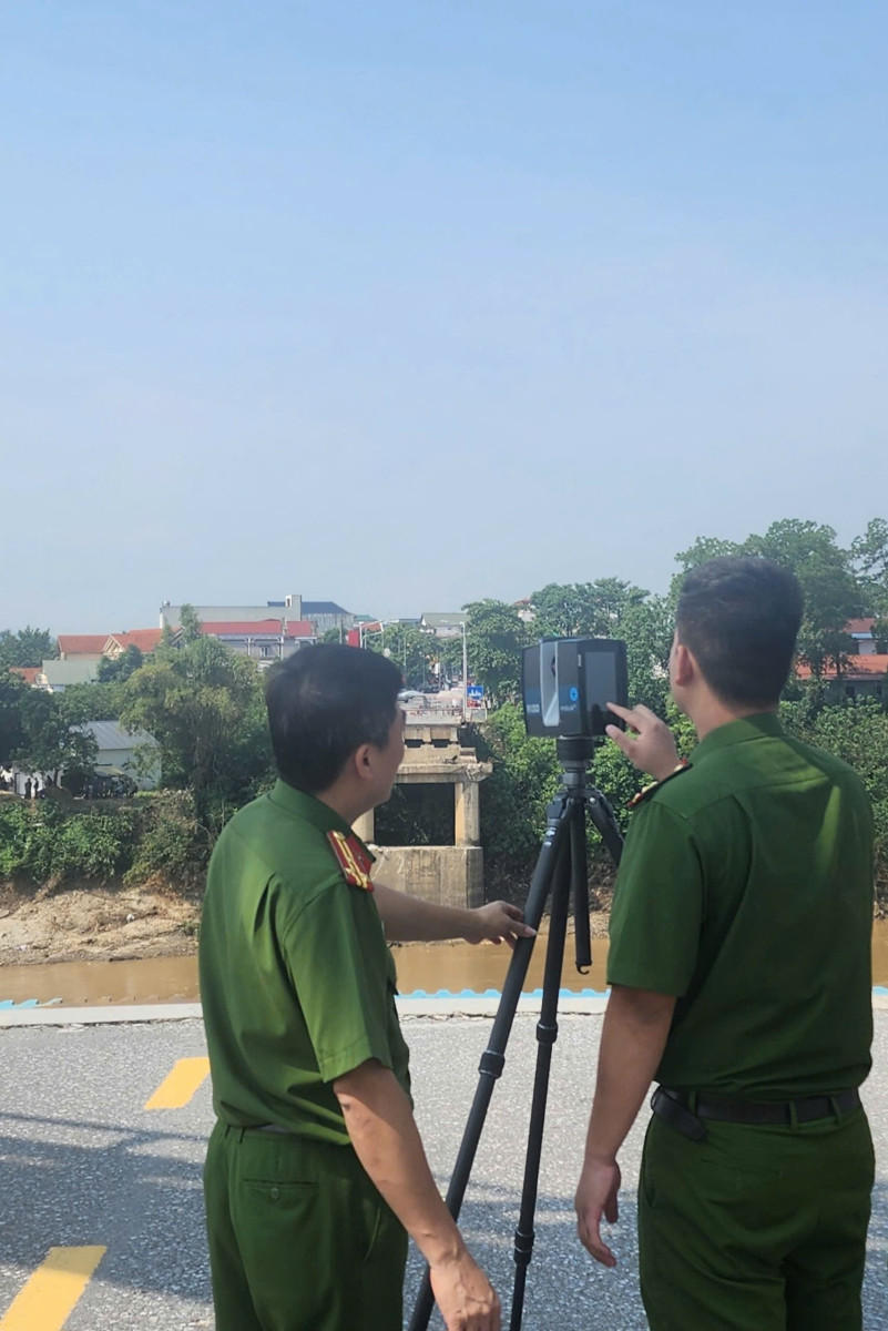 Điển hình là vụ sập cầu Phong Châu xảy ra ngày 09/9/2024. Tại hiện trường vụ việc, diện tích rộng, địa hình khó tiếp cận khiến công tác khám nghiệm gặp nhiều trở ngại. Phòng Kỹ thuật hình sự đã sử dụng hệ thống máy quét 3D để thu thập dữ liệu và dựng lại toàn bộ không gian hiện trường. Nhờ đó, các dấu vết, vật chứng được ghi nhận rõ ràng, trung thực, giúp lực lượng chức năng đánh giá chính xác nguyên nhân, diễn biến vụ việc, làm cơ sở phục vụ điều tra.
