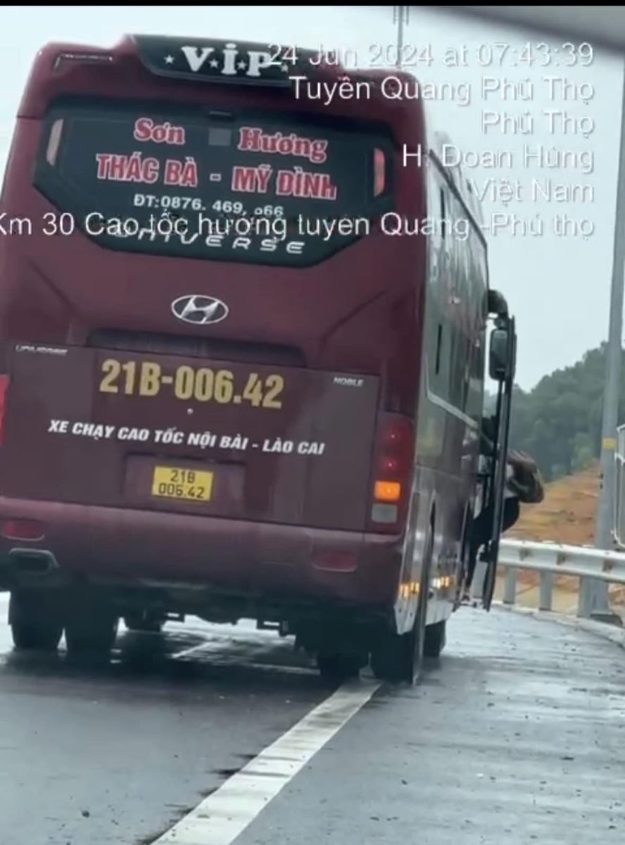 Ngày 24/6/2024, Phòng Cảnh sát giao thông Công an tỉnh Phú Thọ nhận được thông tin phản ánh của người dân qua số điện thoại Zalo đường dây nóng về việc ngày 24/6/2024, tại km 30+700 đường cao tốc Tuyên Quang – Phú Thọ thuộc địa bàn huyện Thanh Ba, tỉnh Phú Thọ xe ô tô khách biển số 21B-006.42 có dấu hiệu vi phạm “Đón, trả hành khách trên đường cao tốc”.