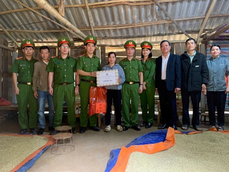 Đoàn công tác đã đến thăm 4 hộ gia đình tại các thôn, xóm trên địa bàn xã. Tại mỗi gia đình, đại diện lãnh đạo, Đoàn Thanh niên và Hội Phụ nữ Văn phòng Cơ quan Cảnh sát điều tra Công an tỉnh đã ân cần thăm hỏi, động viên tinh thần, chia sẻ với những mất mát, khó khăn của bà con. Đồng thời, Đoàn đã trao tặng mỗi hộ phần quà và 3 triệu đồng tiền mặt, góp phần giúp người dân khắc phục hậu quả, sớm ổn định cuộc sống.