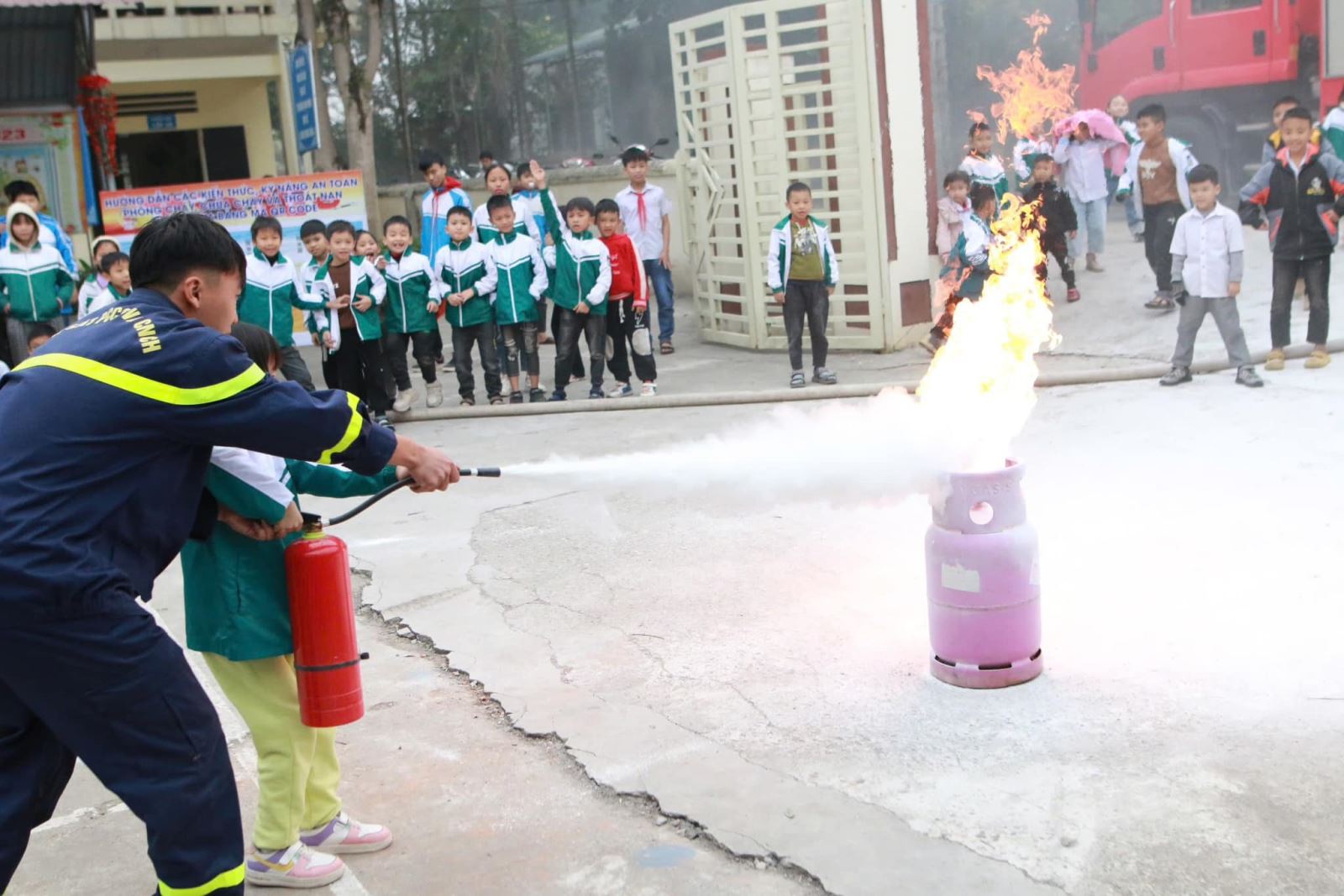 Tại chương trình tuyên truyền, trải nghiệm, các em học sinh, giáo viên hai nhà trường đã được hướng dẫn các kỹ năng xử lý các tình huống cháy, nổ và kỹ năng thoát nạn khi xảy ra cháy; được thực hành chữa cháy, cứu nạn, cứu hộ, trải nghiệm di chuyển thoát nạn trong môi trường nhiều khói, thoát nạn từ trên cao xuống, rải vòi chữa cháy, phun nước tiêu điểm, thực hành dập tắt đám cháy, xử lý bình gas rò rỉ; nhận biết và tránh xa ma tuý học đường, sử dụng an toàn trên không gian mạng internet.