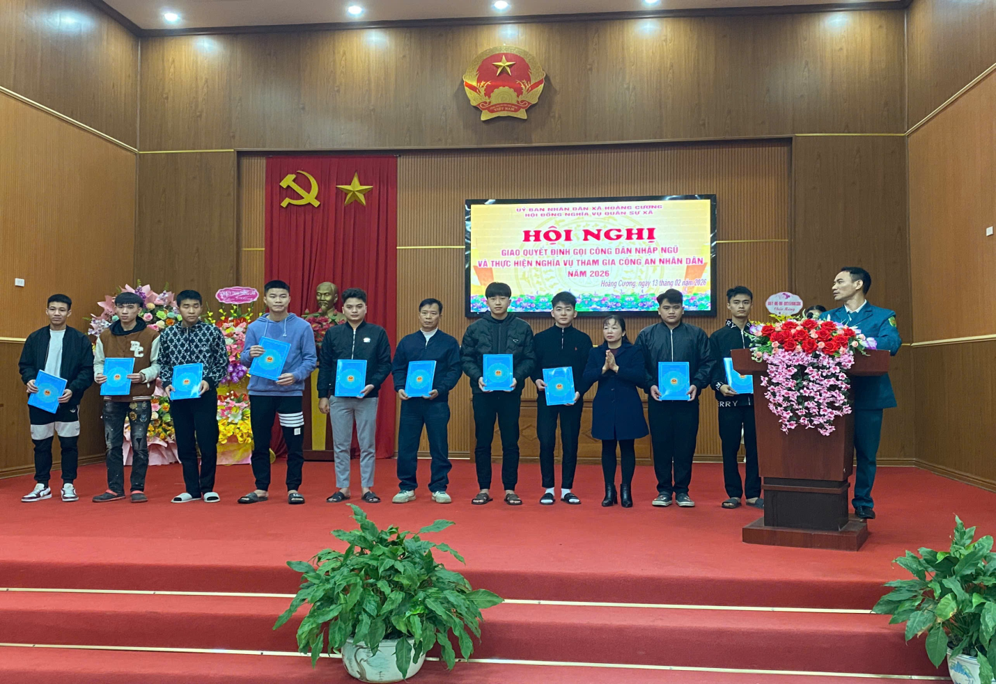 XÃ HOÀNG CƯƠNG TỔ CHỨC HỘI NGHỊ TRAO QUYẾT ĐỊNH GỌI CÔNG DÂN NHẬP NGŨ VÀ THỰC HIỆN NGHĨA VỤ THAM GIA CÔNG AN NHÂN DÂN NĂM 2026 (14/02/2026)