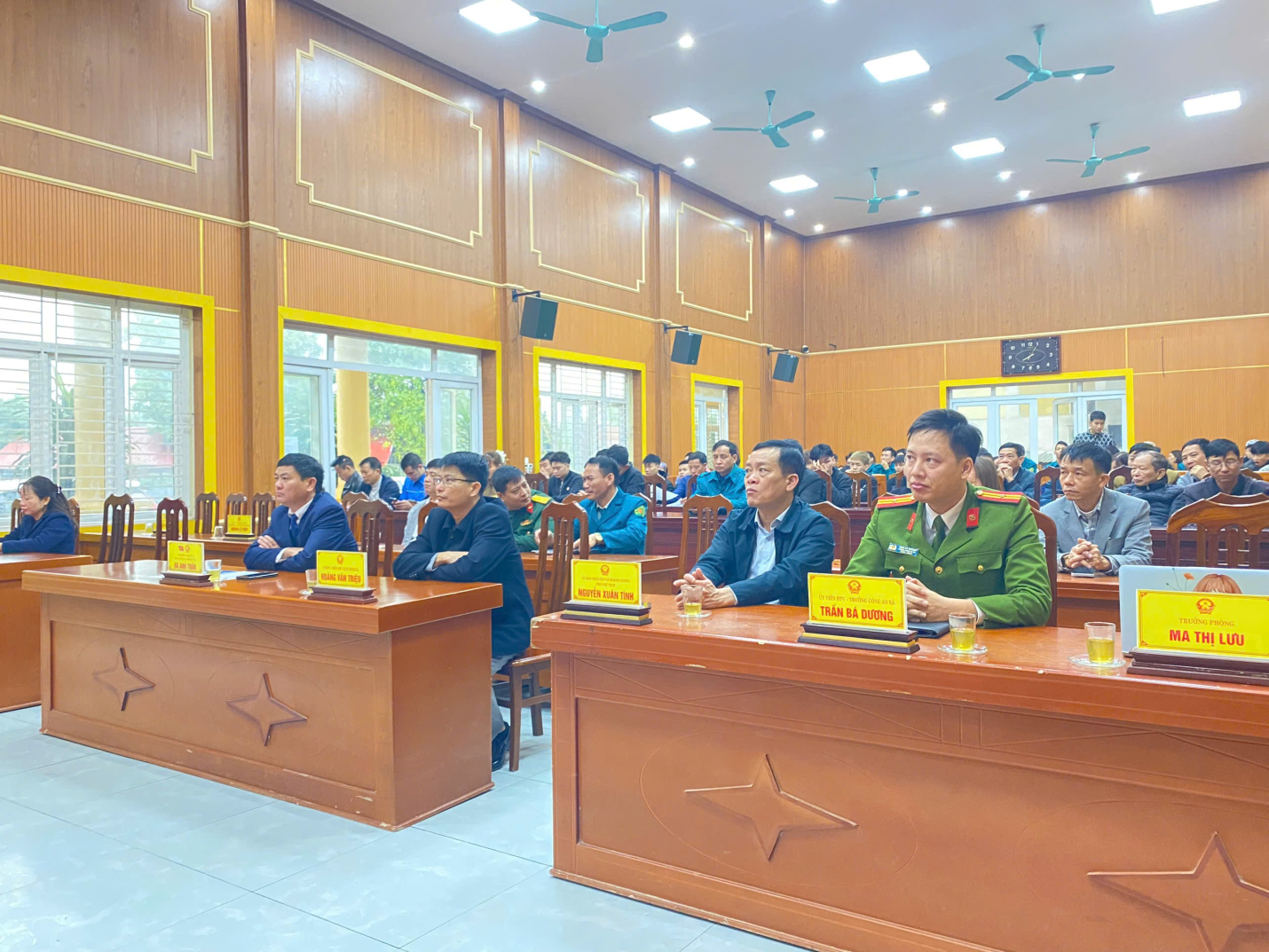 Hình ảnh hoạt động Phát biểu tại hội nghị, đồng chí Hà Anh Tuấn - Chủ tịch UBND xã nhấn mạnh, thực hiện nghĩa vụ quân sự và nghĩa vụ tham gia Công an nhân dân là niềm vinh dự, tự hào của mỗi công dân. Đồng chí mong muốn các thanh niên phát huy truyền thống quê hương, giữ vững bản lĩnh, chấp hành nghiêm kỷ luật, ra sức học tập, rèn luyện, hoàn thành xuất sắc nhiệm vụ được giao.