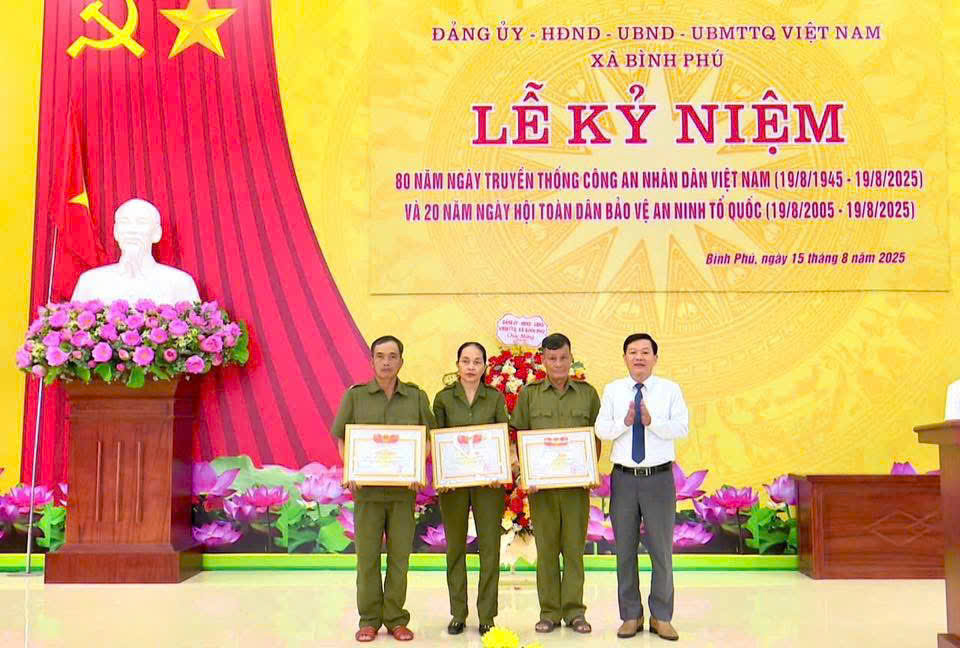 Ngày 15/8/2025, Đảng uỷ - HĐND - UBND - UBMTTQ xã Bình Phú long trọng tổ chức Lễ Kỷ niệm 80 năm Ngày truyền thống Công an nhân dân Việt Nam (19/8/1945 - 19/8/2025) và 20 năm Ngày hội Toàn dân bảo vệ an ninh Tổ quốc (19/8/2005 - 19/8/2025).