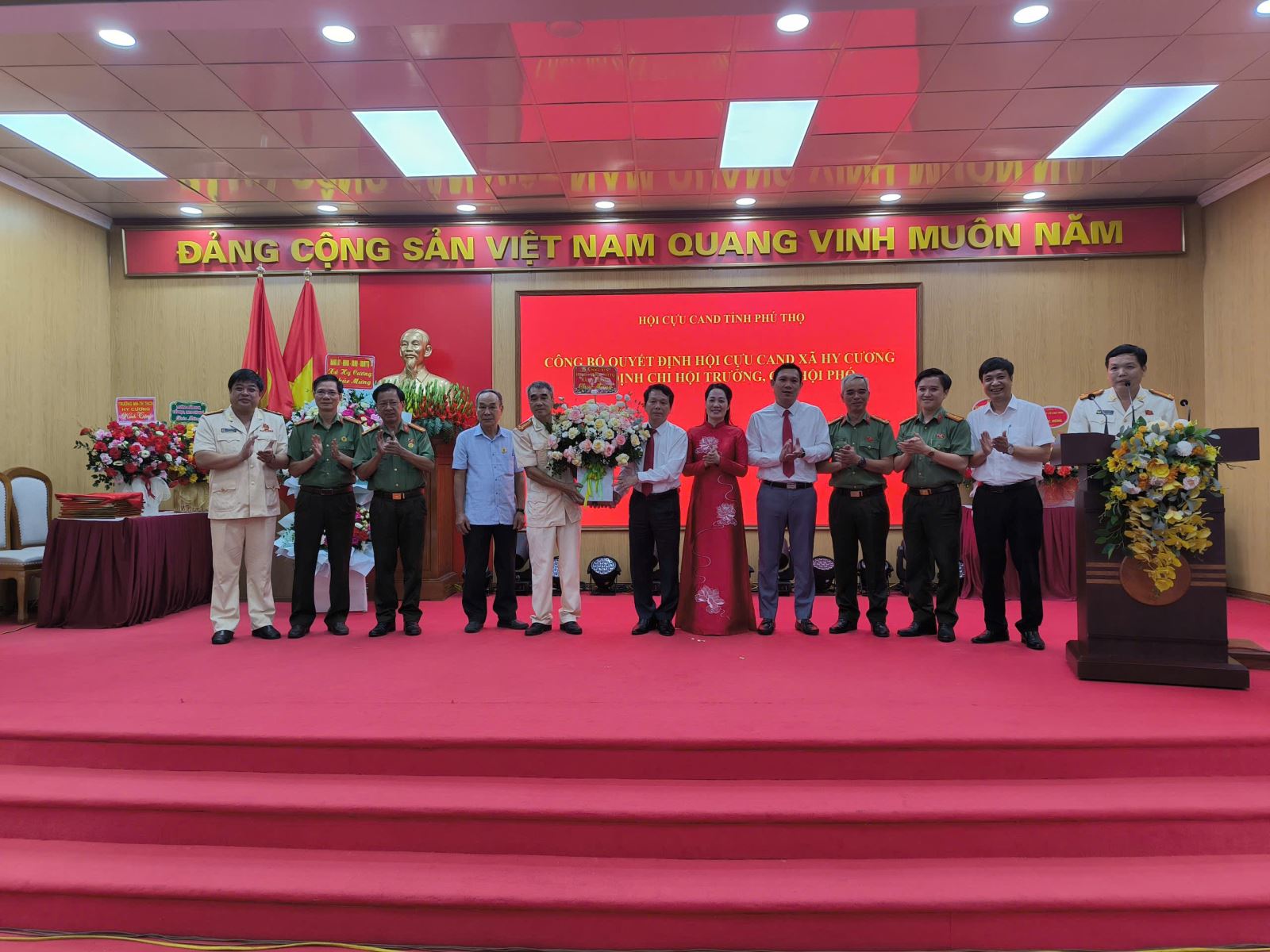 Nhân dịp này, UBND xã Hy Cương đã công bố Quyết định thành lập Hội Cựu Công an nhân dân xã, chỉ định Chi hội trưởng, Chi hội phó; đồng thời biểu dương, khen thưởng 04 tập thể và 06 cá nhân có thành tích xuất sắc trong phong trào thi đua lập thành tích chào mừng 80 năm Ngày truyền thống CAND và 20 năm Ngày hội Toàn dân bảo vệ an ninh Tổ quốc.