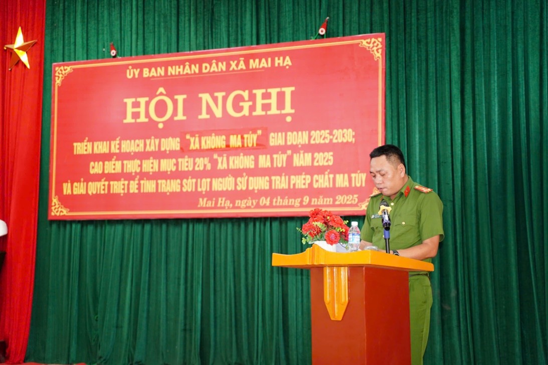 sót lọt người sử dụng trái phép chất ma túy Bên cạnh đó, Công an xã Mai Hạ phối hợp với các ban, ngành, đoàn thể địa phương đẩy mạnh tuyên truyền qua hệ thống loa phát thanh, mạng xã hội, phát tờ rơi, dán pano, áp phích tại các khu dân cư, khu vực công cộng nhằm lan tỏa thông điệp phòng, chống ma túy đến từng người dân.