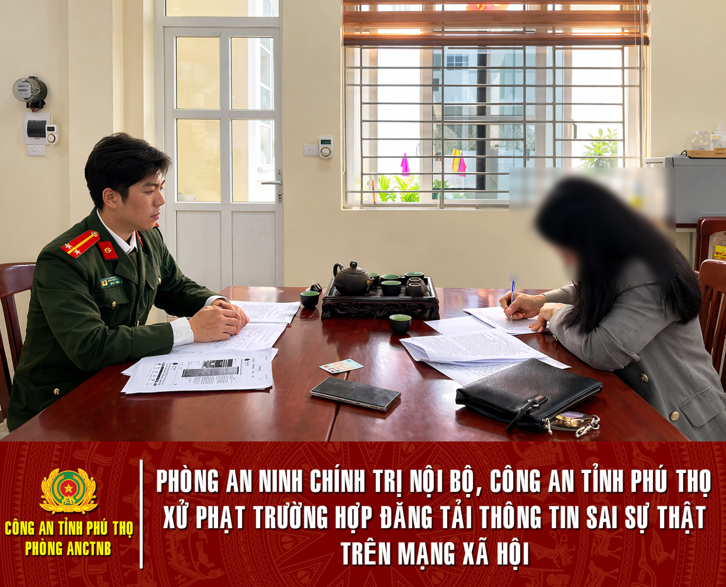 Hình ảnh thông tin sai sự thật được đăng tải trên mạng xã hội Ngày 05/3/2026, Phòng An ninh chính trị nội bộ, Công an tỉnh Phú Thọ ra quyết định xử phạt vi phạm hành chính đối với Đ.T.L về hành vi cung cấp, chia sẻ thông tin giả mạo, thông tin sai sự thật, xuyên tạc, vu khống, xúc phạm uy tín của cơ quan, tổ chức, danh dự, nhân phẩm của người khác theo quy định theo điểm a, khoản 1, Điều 101, Nghị định số 15/2020/NĐ-CP ngày 03/02/2020 của Chính phủ (