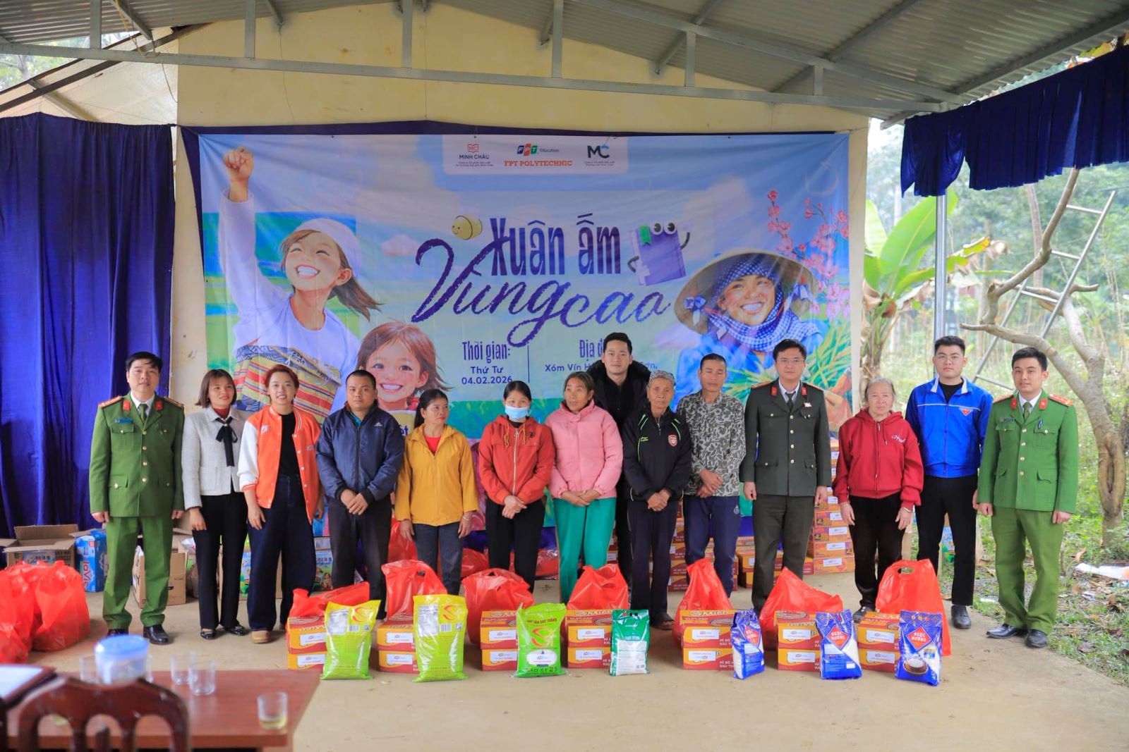 Chia sẻ với những khó khăn đó, Chương trình “Xuân ấm vùng cao” được tổ chức với mong muốn góp phần động viên, hỗ trợ người dân có thêm điều kiện đón Tết cổ truyền. Tại buổi trao quà, đại diện Công an xã Lạc Sơn, Trường Cao đẳng FPT PolyTechnic và các nhà tài trợ đã trao tặng 50 phần quà với tổng trị giá trên 30 triệu đồng. Các phần quà gồm nhu yếu phẩm thiết yếu, sách vở, áo ấm, chăn ấm phục vụ sinh hoạt hằng ngày, phù hợp với nhu cầu thực tế của bà con Nhân dân.