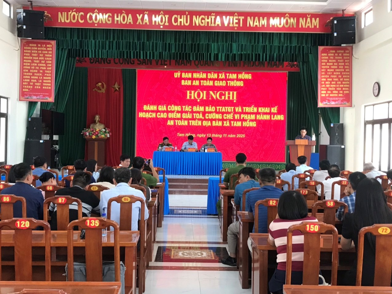 Thực hiện chỉ đạo của Đảng ủy và UBND xã Tam Hồng, sáng 13/11/2025, Ban An toàn giao thông xã tổ chức Hội nghị đánh giá công tác bảo đảm TTATGT từ ngày 01/7/2025 đến nay và triển khai Kế hoạch cao điểm tuyên truyền, giải tỏa, cưỡng chế vi phạm hành lang an toàn giao thông trên địa bàn những tháng cuối năm 2025.