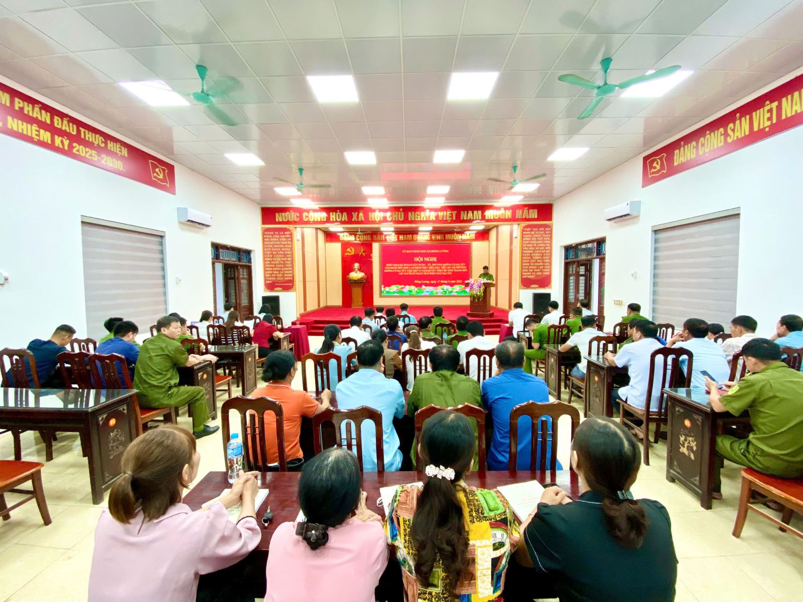 Vừa qua, Công an xã Đồng Lương đã tham mưu cho UBND xã Đồng Lương tổ chức Hội nghị triển khai kế hoạch xây dựng xã, phường không ma túy giai đoạn 2025 – 2030, đồng thời phát động đợt cao điểm thực hiện mục tiêu 20% xã, phường không ma túy năm 2025 và giải quyết triệt để tình trạng còn sót, lợi người sử dụng trái phép chất ma túy trên địa bàn. Tham dự Hội nghị có đại diện lãnh đạo chính quyền địa phương; các ban ngành, đoàn thể; cán bộ chiến sĩ Công an xã; bí thư các chi bộ, trưởng các khu dân cư và lực lượng bảo vệ an ninh trật tự cơ sở.