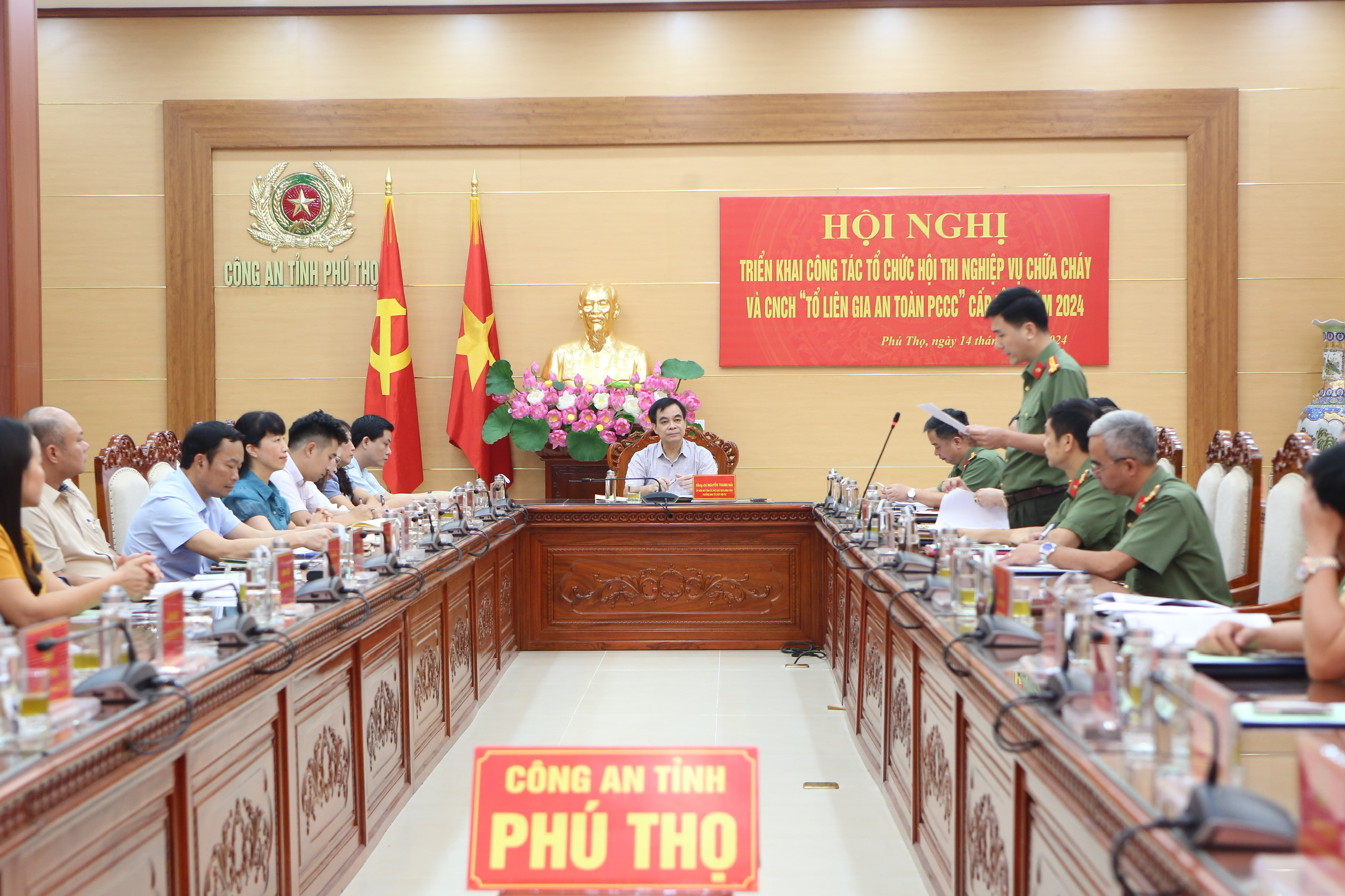Ngày 14/5/2024, tại Công an tỉnh, Ban tổ chức Hội thi nghiệp vụ chữa cháy và cứu nạn cứu hộ “Tổ liên gia an toàn phòng cháy chữa cháy” cấp tỉnh năm 2024 tổ chức hội nghị triển khai công tác tổ chức Hội thi. Dự và chỉ đạo hội nghị có các đồng chí: Nguyễn Thanh Hải - Ủy viên BTV Tỉnh ủy, Phó Chủ tịch UBND tỉnh, Trưởng Ban tổ chức Hội thi; đồng chí Lương Ngọc Thạch – Phó Chủ tịch Uỷ ban MTTQ Việt Nam tỉnh, Phó trưởng Ban tổ chức hội thi; đồng chí Đại tá Nguyễn Hữu Phước – Phó Bí thư Đảng uỷ, Phó Giám đốc Công an tỉnh.