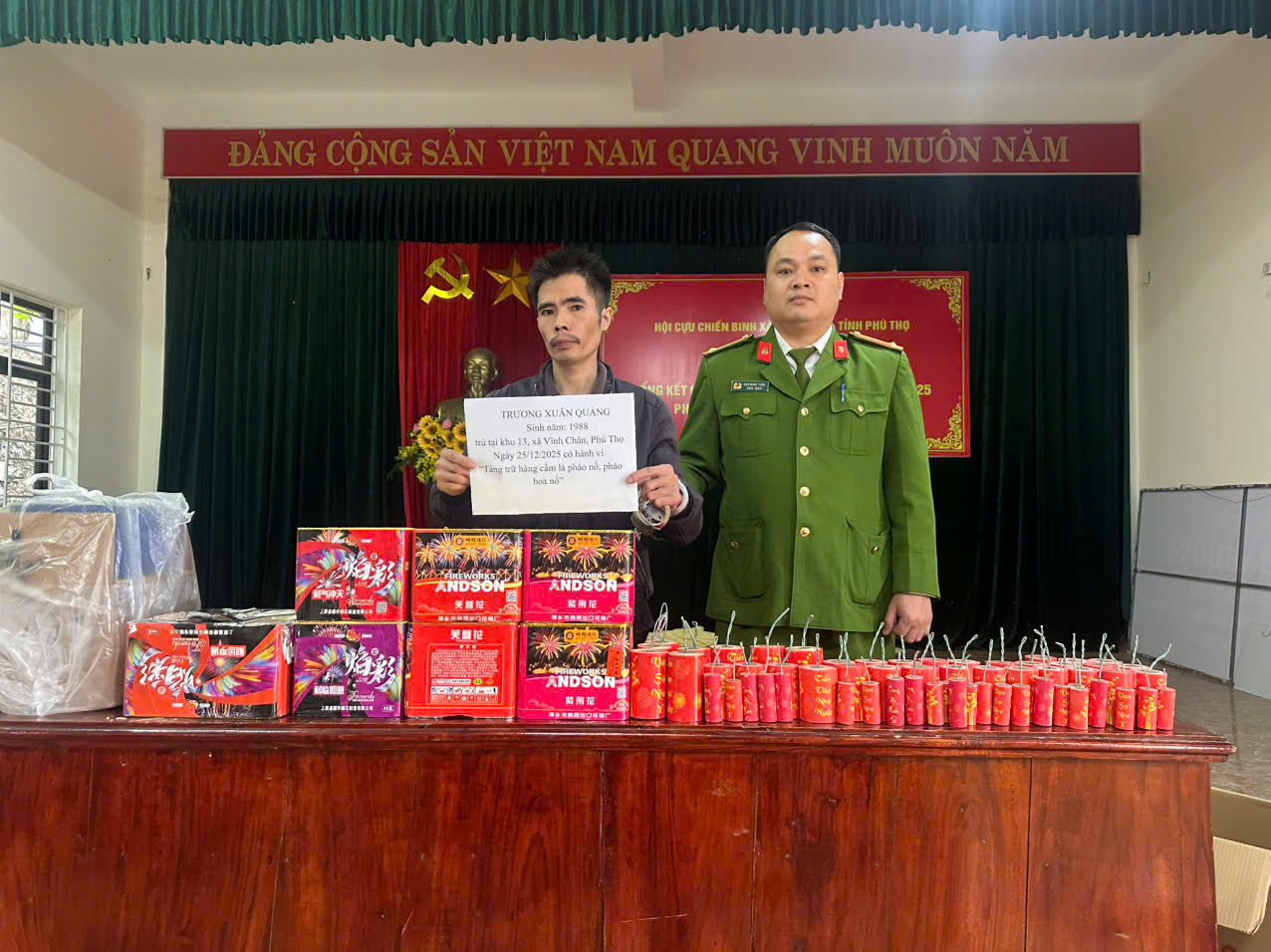 Trong quá trình tăng cường nắm tình hình, đấu tranh phòng, chống các hành vi vi phạm pháp luật liên quan đến pháo nổ, Phòng Cảnh sát Kinh tế Công an tỉnh Phú Thọ đã phát hiện, xử lý một trường hợp tàng trữ pháo hoa nổ, pháo nổ trái phép với số lượng lớn, góp phần bảo đảm an ninh, trật tự trên địa bàn.