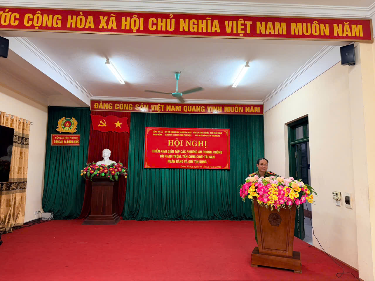 Trước diễn biến phức tạp của tình hình tội phạm cướp tài sản tại các ngân hàng, tổ chức tín dụng trên phạm vi cả nước, với nhiều vụ việc xảy ra có tính chất manh động, sử dụng hung khí nguy hiểm, gây ảnh hưởng đến an ninh, trật tự và tâm lý của cán bộ, nhân viên ngân hàng cũng như quần chúng nhân dân, Công an xã Đoan Hùng đã chủ động tham mưu, phối hợp tổ chức hội nghị tuyên truyền, tập huấn kỹ năng phòng, chống tội phạm cướp tài sản ngân hàng, tổ chức tín dụng trên địa bàn năm 2026.
