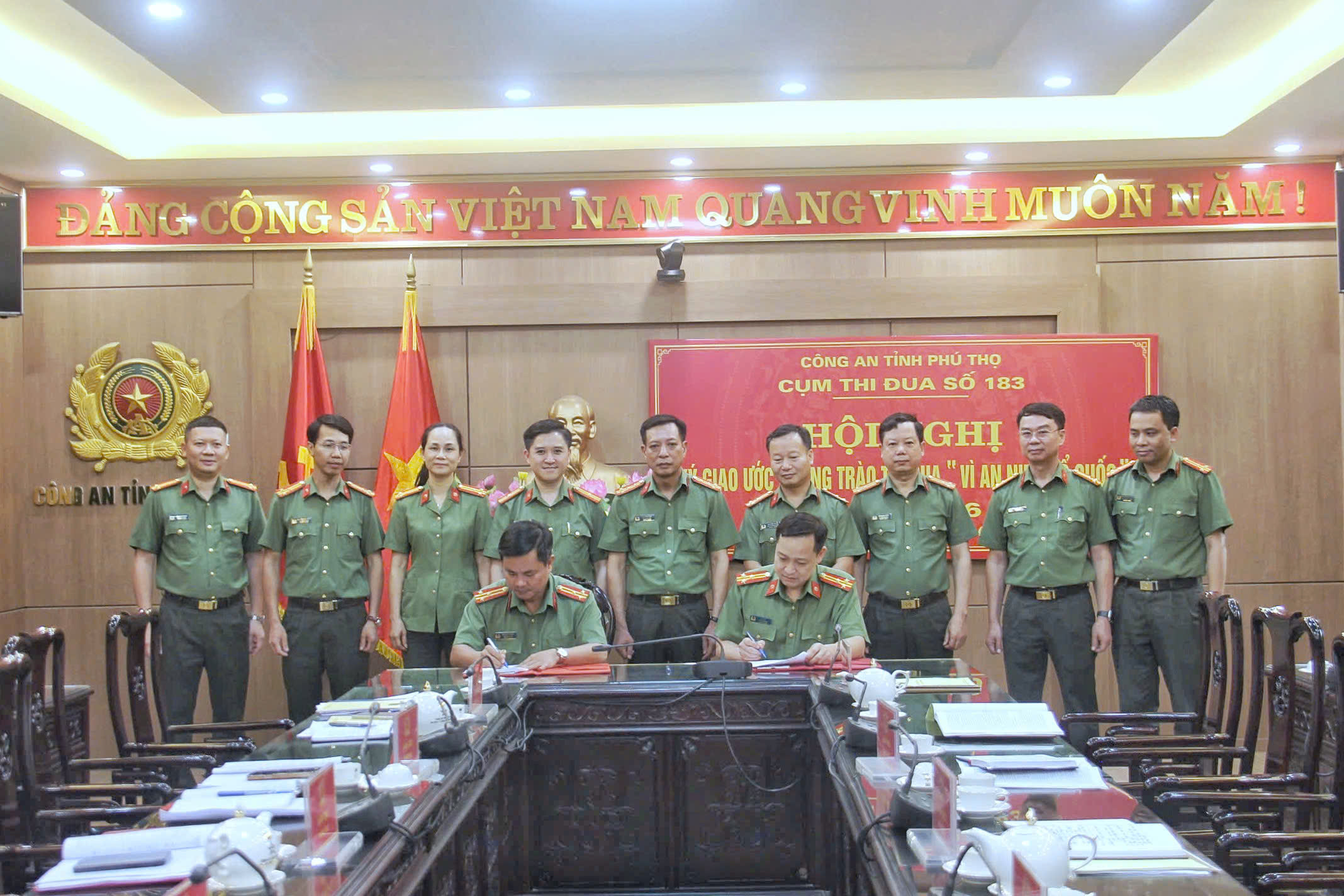 Chiều 06/4/2026, Phòng An ninh đối nội Công an tỉnh Phú Thọ chủ trì tổ chức Hội nghị giao ước thực hiện phong trào thi đua “Vì An ninh Tổ quốc” năm 2026 đối với Cụm thi đua số 183, nhằm cụ thể hóa các chỉ tiêu, nhiệm vụ công tác, nâng cao hiệu quả thực hiện nhiệm vụ trong năm.