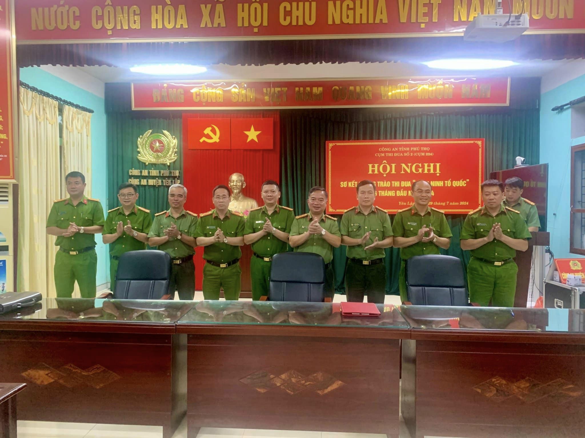 Chiều ngày 29/7/2024, tại Công an huyện Yên Lập, Cụm thi đua số 2 (Cụm 224) đã tổ chức Hội nghị sơ kết phong trào thi đua “Vì an ninh Tổ quốc” 6 tháng đầu năm 2024. Tới dự và chỉ đạo hội nghị có đồng chí Đại tá Nguyễn Hữu Phước - Phó Bí thư Đảng uỷ, Phó Giám đốc Công an tỉnh, đại diện lãnh đạo các phòng chức năng, lãnh đạo và CBCS các đơn vị trong Cụm thi đua số 2 (Cụm 224) gồm Công an các huyện Thanh Thuỷ (Cụm trưởng), Yên Lập (Cụm phó), Cẩm Khê, Tam Nông, Thanh Sơn, Tân Sơn.