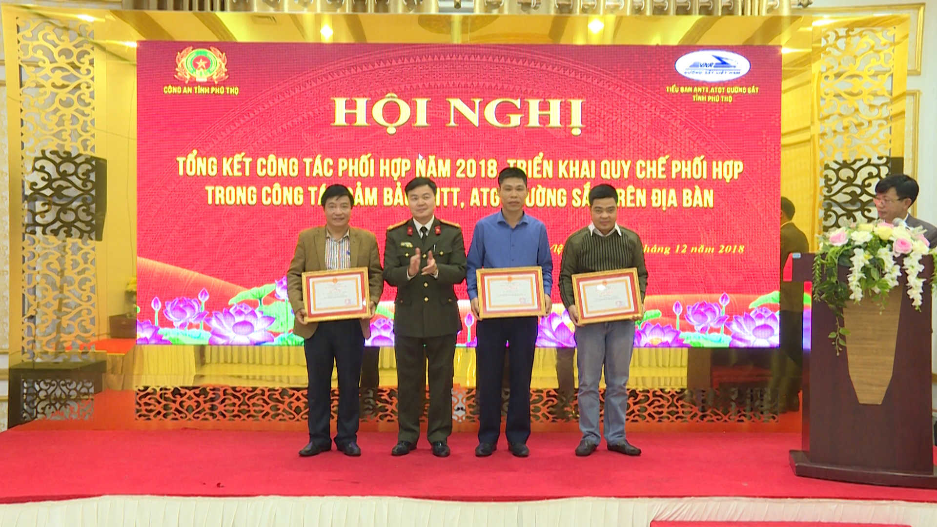 Vừa qua, Công an tỉnh phối hợp với tiểu ban an ninh trật tự, an toàn giao thông đường sắt tỉnh Phú Thọ tổ chức Hội nghị tổng kết công tác phối hợp năm 2018, triển khai quy chế phối hợp công tác đảm bảo ANTT, ATGT đường sắt năm 2019. Dự và chỉ đạo hội nghị có đại diện Ban Giám đốc Công an tỉnh và đại diện lãnh đạo Tổng Công ty đường sắt Việt Nam.