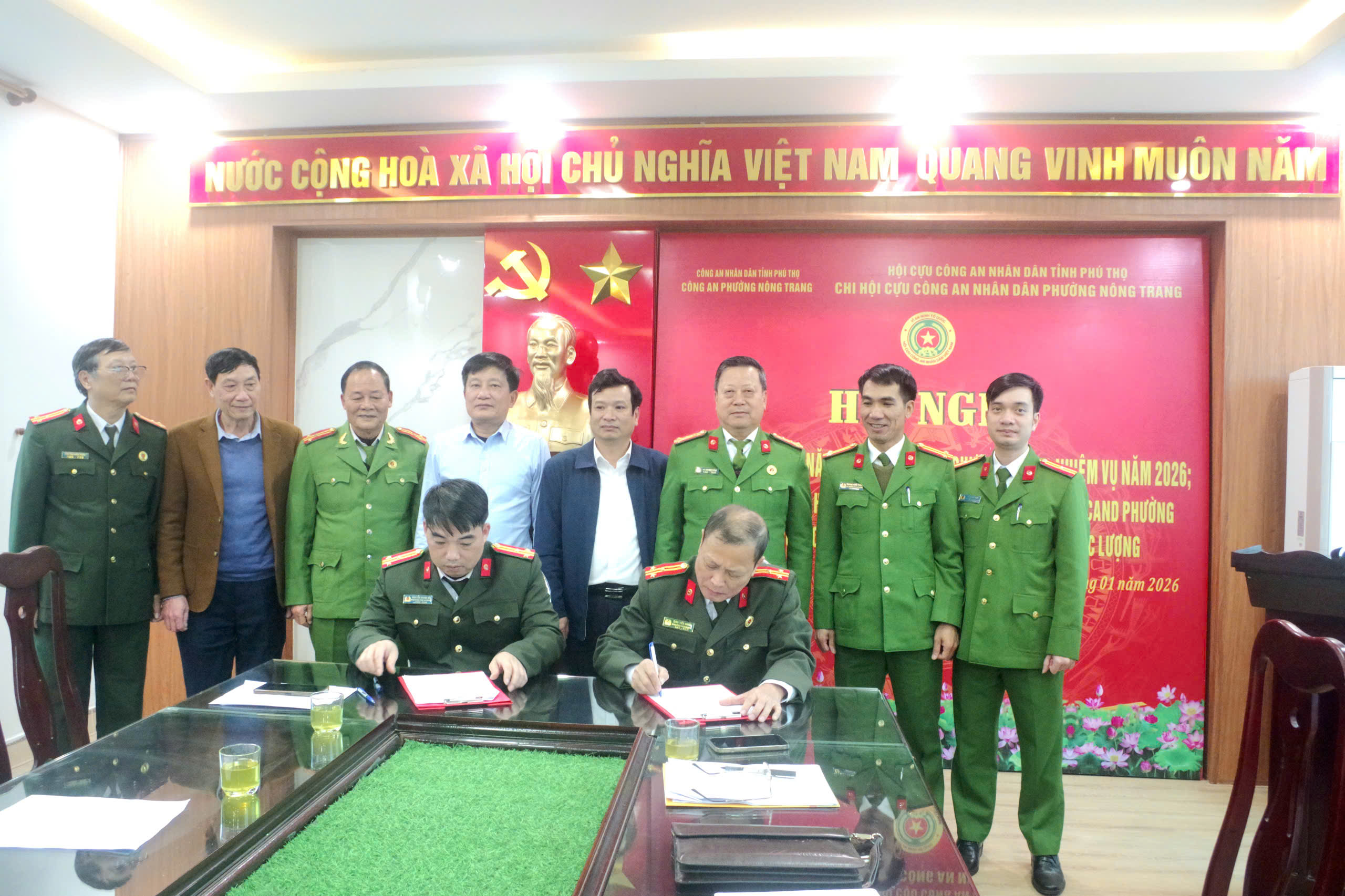 Ngày 22/01/2026, Công an phường Nông Trang tổ chức Lễ ký kết Quy chế phối hợp với Chi hội Cựu Công an nhân dân phường Nông Trang trong công tác bảo đảm an ninh, trật tự (ANTT) trên địa bàn.