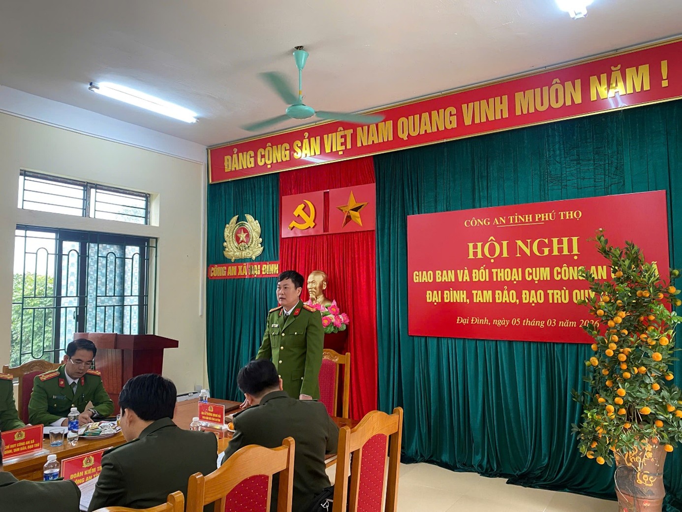 Ngày 05/3/2026, tại trụ sở Công an xã Đại Đình, Công an tỉnh Phú Thọ tổ chức kiểm tra các mặt công tác, đồng thời tiến hành Hội nghị giao ban, đối thoại với Công an các xã Tam Đảo, Đại Đình, Đạo Trù nhằm đánh giá tình hình, kết quả thực hiện nhiệm vụ và kịp thời tháo gỡ khó khăn, vướng mắc trong quá trình triển khai công tác bảo đảm an ninh, trật tự tại cơ sở.