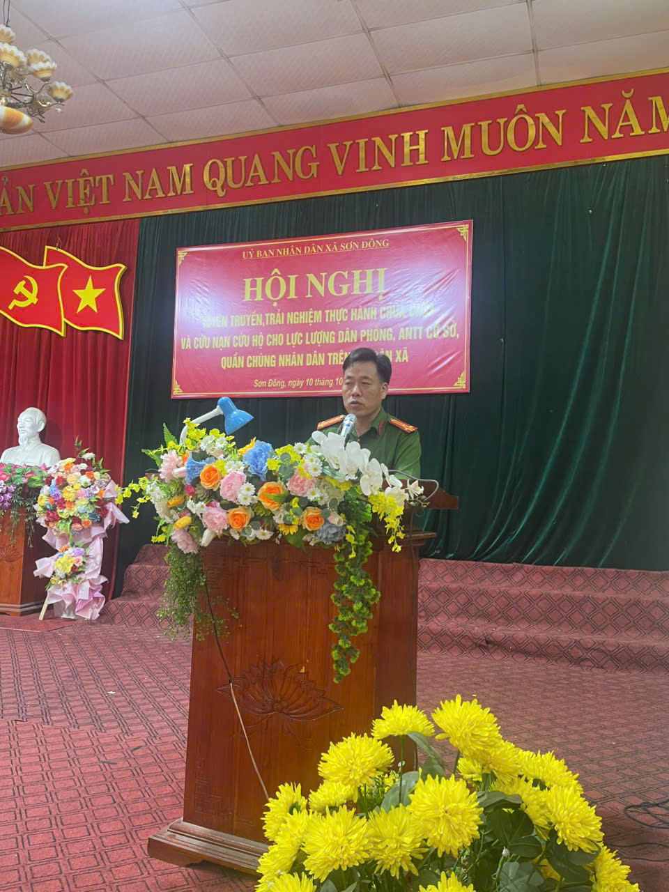 Nhằm đánh giá kết quả công tác bảo đảm an ninh, trật tự trong tháng 10 và triển khai nhiệm vụ trọng tâm tháng 11/2025, sáng ngày 05/11/2025, Công an xã Sơn Đông tổ chức Hội nghị giao ban công tác với lực lượng an ninh, trật tự (ANTT) cơ sở. Tham dự hội nghị có các đồng chí trong Ban Chỉ huy Công an xã, toàn thể cán bộ, chiến sĩ Công an xã và Tổ trưởng Tổ ANTT của 44 thôn trên địa bàn. Đồng chí Thượng tá Phan Công Anh, Trưởng Công an xã Sơn Đông, chủ trì hội nghị.