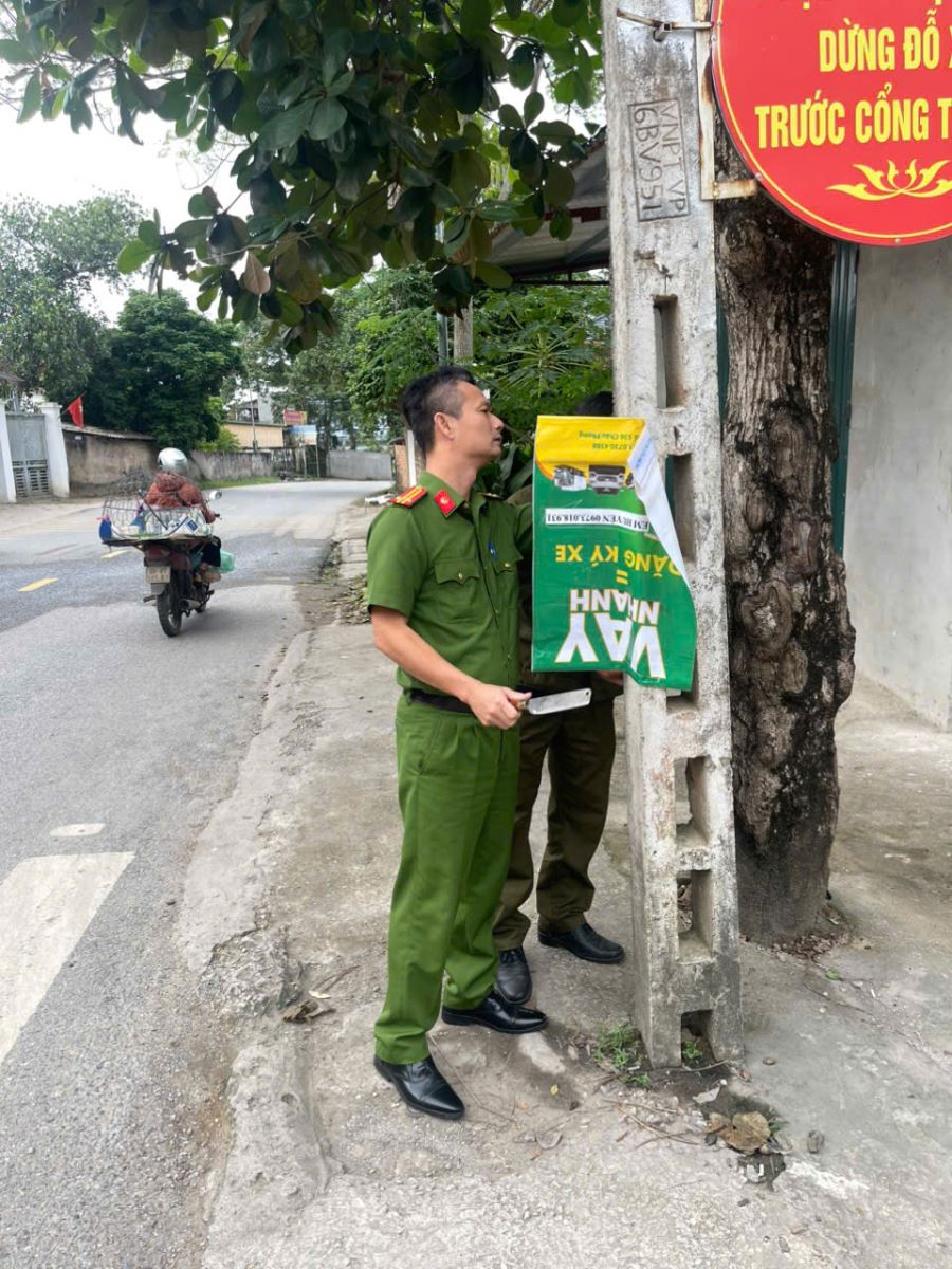 Thực hiện kế hoạch tăng cường quản lý trật tự đô thị, đảm bảo mỹ quan nông thôn và an ninh trật tự trên địa bàn, Công an xã Sông Lô vừa tổ chức ra quân bóc xóa, tháo dỡ các bảng quảng cáo, rao vặt sai quy định tại nhiều khu vực công cộng.