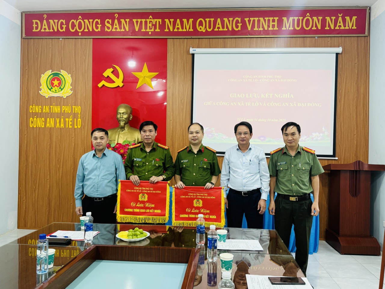 Chiều ngày 31/10/2025, tại trụ sở Công an xã Tề Lỗ, Công an xã Tề Lỗ và Công an xã Đại Đồng, tỉnh Phú Thọ tổ chức chương trình giao lưu, kết nghĩa nhằm tăng cường đoàn kết, phối hợp trong thực hiện nhiệm vụ bảo đảm an ninh, trật tự (ANTT) ở cơ sở và xây dựng phong trào Toàn dân bảo vệ an ninh Tổ quốc.