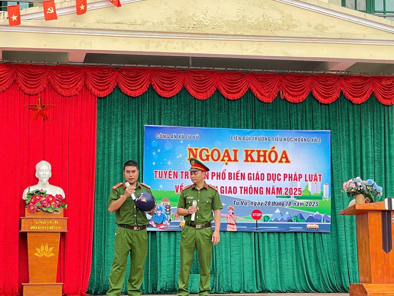 Nhằm nâng cao ý thức chấp hành pháp luật về trật tự, an toàn giao thông trong lứa tuổi học sinh, trong tháng 10/2025, Công an xã Tu Vũ đã phối hợp với các trường Tiểu học và Trung học cơ sở trên địa bàn tổ chức các buổi tuyên truyền, phổ biến pháp luật về trật tự, an toàn giao thông cho hơn 2.500 cán bộ, giáo viên và học sinh.
