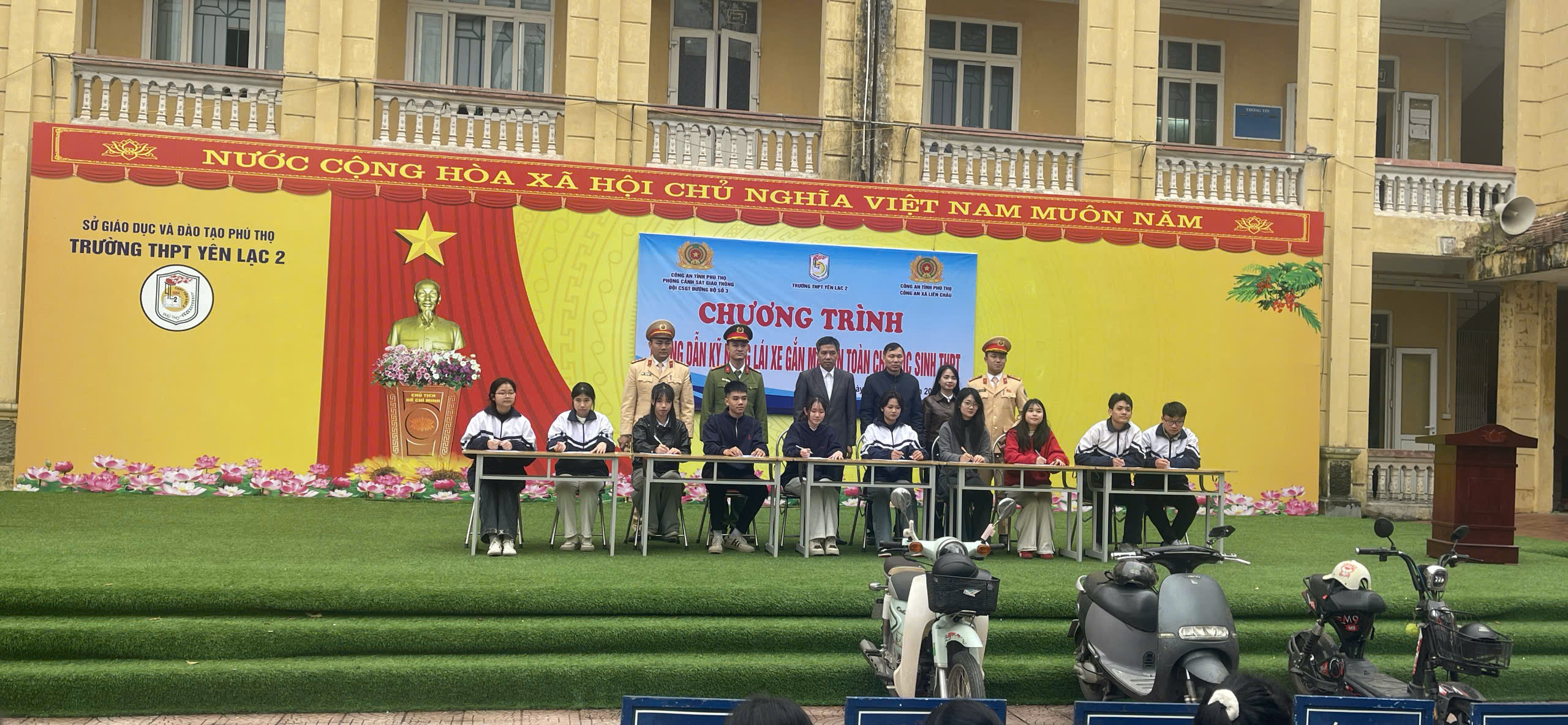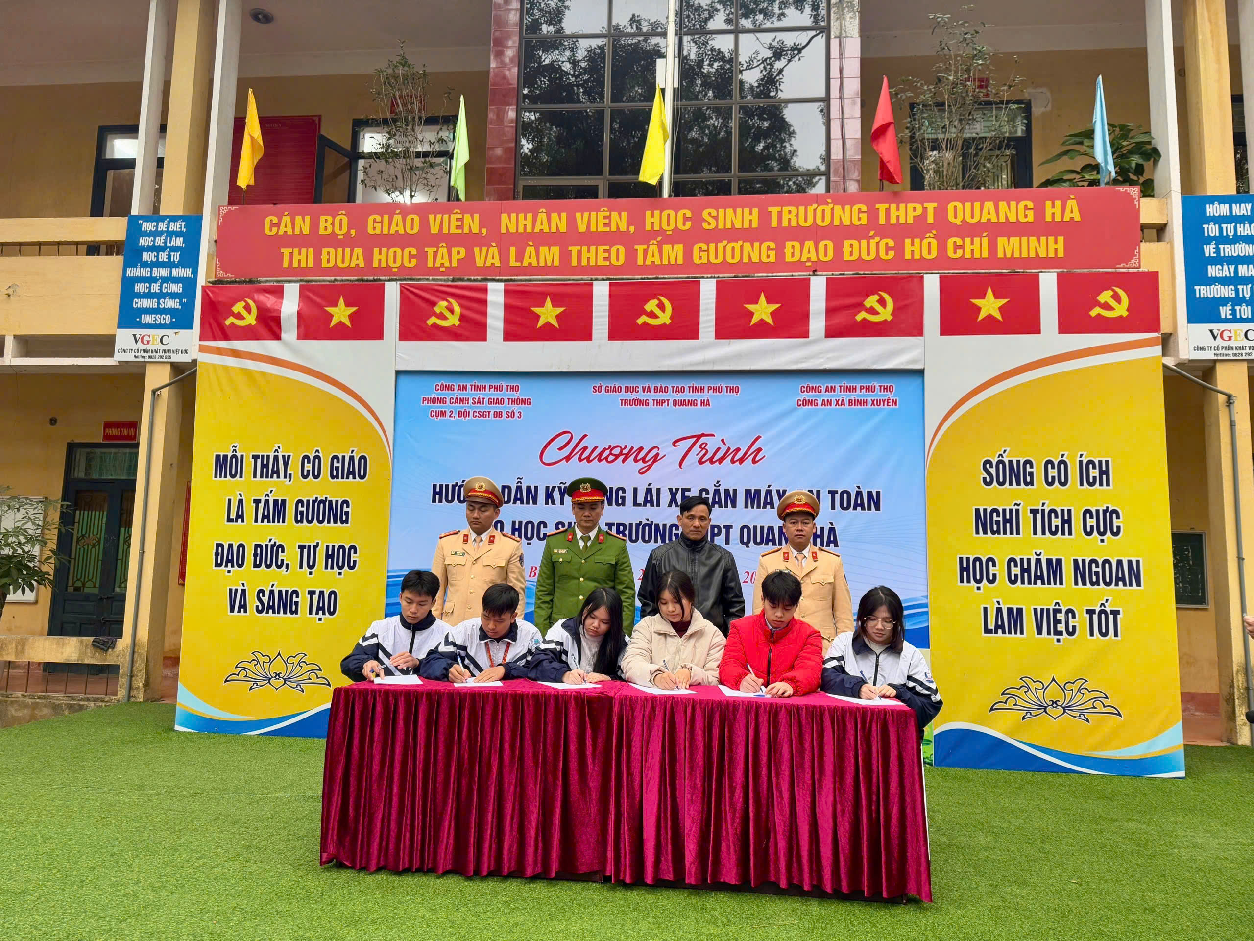 Nhằm nâng cao nhận thức, ý thức chấp hành pháp luật về trật tự an toàn giao thông cho học sinh, góp phần phòng ngừa tai nạn giao thông trong lứa tuổi thanh thiếu niên, ngày 23/01/2026, Công an xã Bình Xuyên đã phối hợp với Phòng Cảnh sát giao thông Công an tỉnh Phú Thọ tổ chức chương trình tuyên truyền, hướng dẫn kỹ năng lái xe gắn máy an toàn cho học sinh Trường THPT Quang Hà.