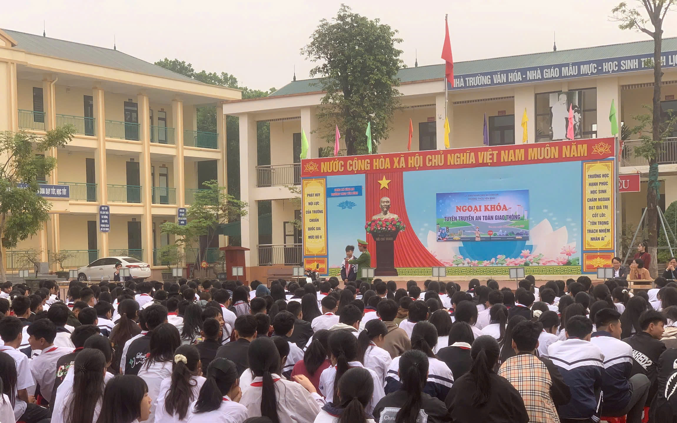 Thực hiện Kế hoạch của Công an tỉnh Phú Thọ về công tác tuyên truyền, phổ biến, giáo dục pháp luật về trật tự an toàn giao thông, ngày 19/01/2026, Công an xã Vĩnh An đã phối hợp với Trường Trung học cơ sở Yên Bình, xã Vĩnh An tổ chức buổi ngoại khóa tuyên truyền pháp luật về an toàn giao thông cho toàn thể cán bộ, giáo viên và 833 học sinh nhà trường.