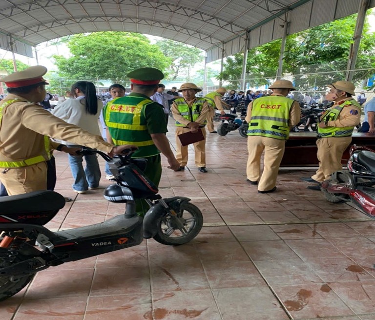 Sáng ngày 12/11/2025, Công an xã Hoàng Cương phối hợp với Phòng Cảnh sát giao thông - Công an tỉnh Phú Thọ tổ chức kiểm tra và tuyên truyền công tác đảm bảo an toàn giao thông học đường tại trường THPT Thanh Ba.