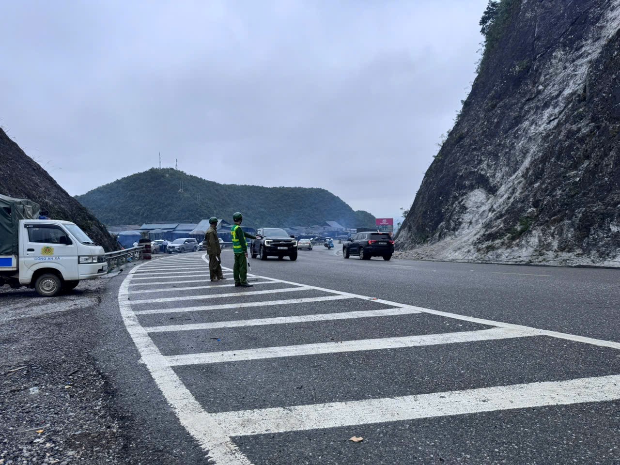 Trước ảnh hưởng của cơn bão số 13 gây mưa lớn kéo dài, kèm theo sương mù dày đặc khiến đường trơn trượt, tiềm ẩn nguy cơ tai nạn giao thông, lực lượng Công an xã Mường Bi đã tăng cường các biện pháp hướng dẫn, cảnh báo và đảm bảo an toàn cho người và phương tiện khi lưu thông qua khu vực đèo Đá Trắng (Quốc lộ 6)