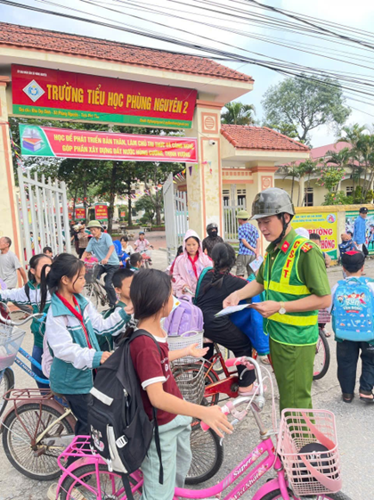 Nhằm nâng cao ý thức chấp hành pháp luật về trật tự an toàn giao thông (ATGT) cho học sinh và phụ huynh, từ ngày 01/11 đến 09/11/2025, Công an xã Phùng Nguyên đã phối hợp với các trường tiểu học trên địa bàn tổ chức hoạt động tuyên truyền, phát tờ rơi về ATGT tại các cổng trường trong giờ tan học.