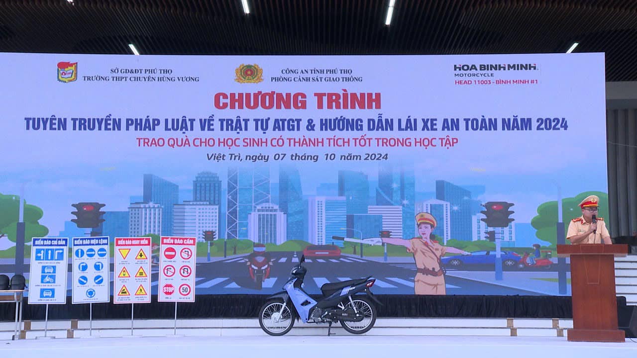 Phòng CSGT phối hợp với Công ty Honda Bình Minh, trường THPT Chuyên Hùng Vương vừa tổ chức chương trình tuyên truyền, phổ biến, giáo dục pháp luật về về TTATGT và hướng dẫn kỹ năng lái xe an toàn cho học sinh trường PTTH chuyên Hùng Vương.