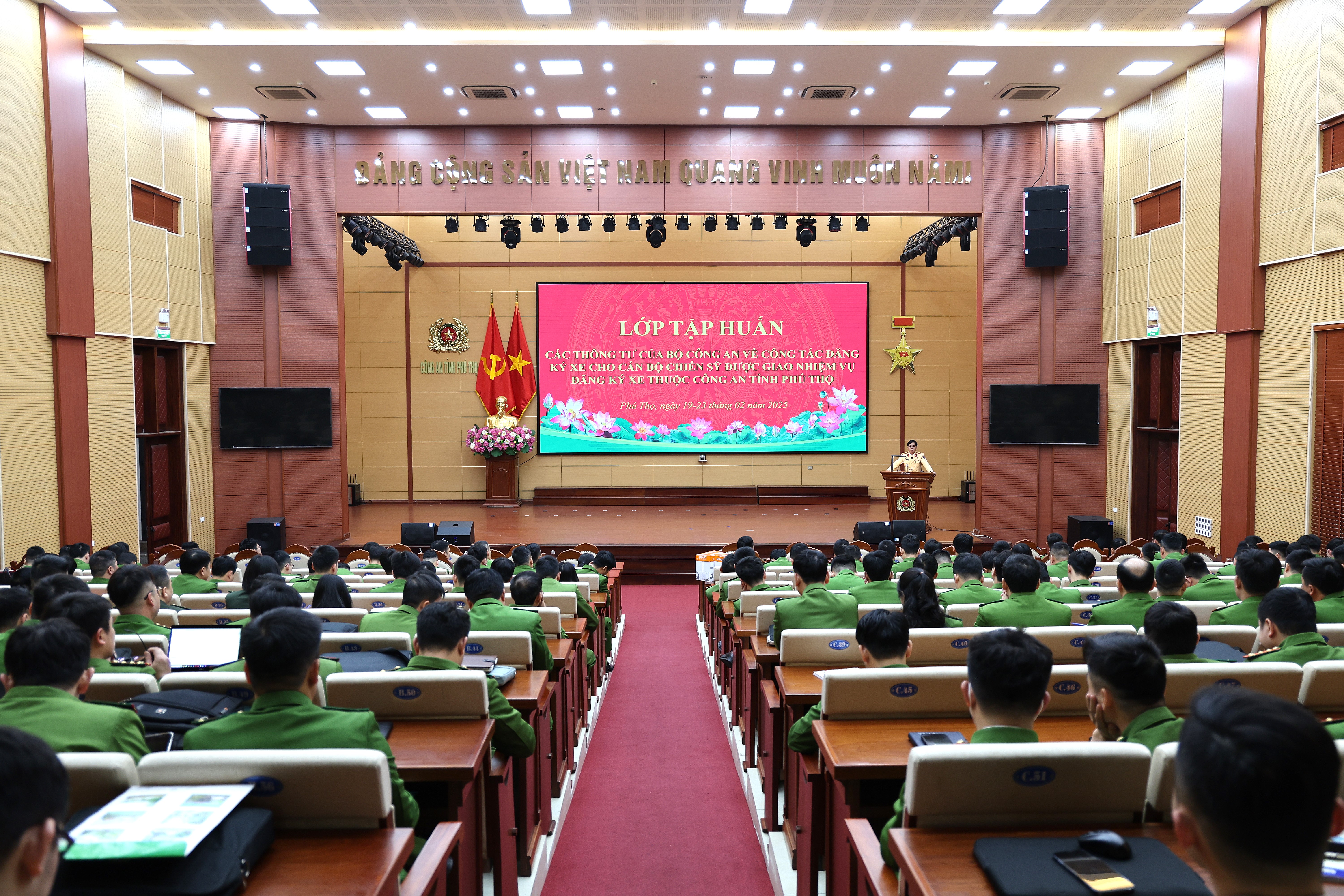 Sáng 19/2, Công an tỉnh Phú Thọ tổ chức tập huấn các Thông tư của Bộ Công an về công tác đăng ký xe cho trên 220 cán bộ chiến sỹ được giao nhiệm vụ đăng ký xe thuộc Công an tỉnh Phú Thọ. Dự chỉ đạo buổi tập huấn có đại diện lãnh đạo phòng Cảnh sát giao thông.