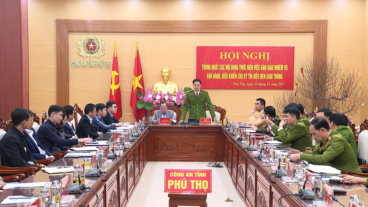 Sáng 24/1, Công an tỉnh tổ chức Hội nghị thống nhất các nội dung thực hiện việc bàn giao nhiệm vụ vận hành, điều khiển chu kỳ tín hiệu đèn giao thông. Chủ trì hội nghị đồng chí Thượng tá Nguyễn Xuân Trung, Phó Bí thư Đảng ủy, Phó Giám đốc Công an tỉnh; đồng chí Nguyễn Chí Lợi, Phó Giám đốc Sở Giao thông vận tải tỉnh Phú Thọ.