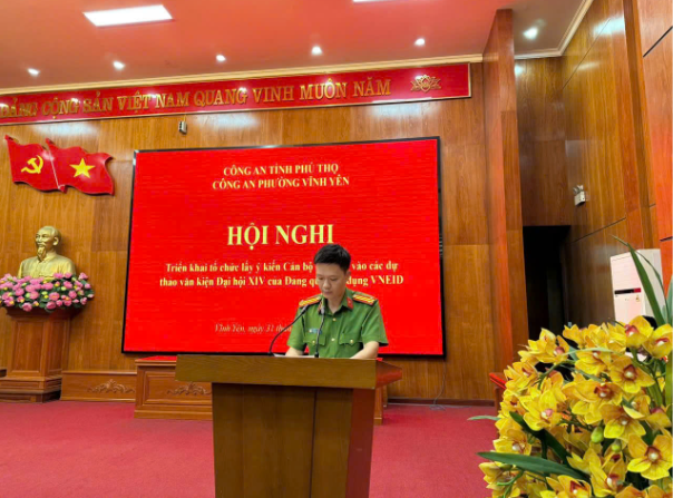 Hướng tới Đại hội đại biểu toàn quốc lần thứ XIV của Đảng, thực hiện chỉ đạo của Bộ Công an, Công an tỉnh Phú Thọ và Đảng ủy, UBND phường Vĩnh Yên về việc tổ chức lấy ý kiến nhân dân vào các dự thảo văn kiện Đại hội XIV của Đảng thông qua ứng dụng VNeID, Công an phường Vĩnh Yên đã chủ động triển khai đồng bộ các bước, bảo đảm thực hiện nghiêm túc, hiệu quả.