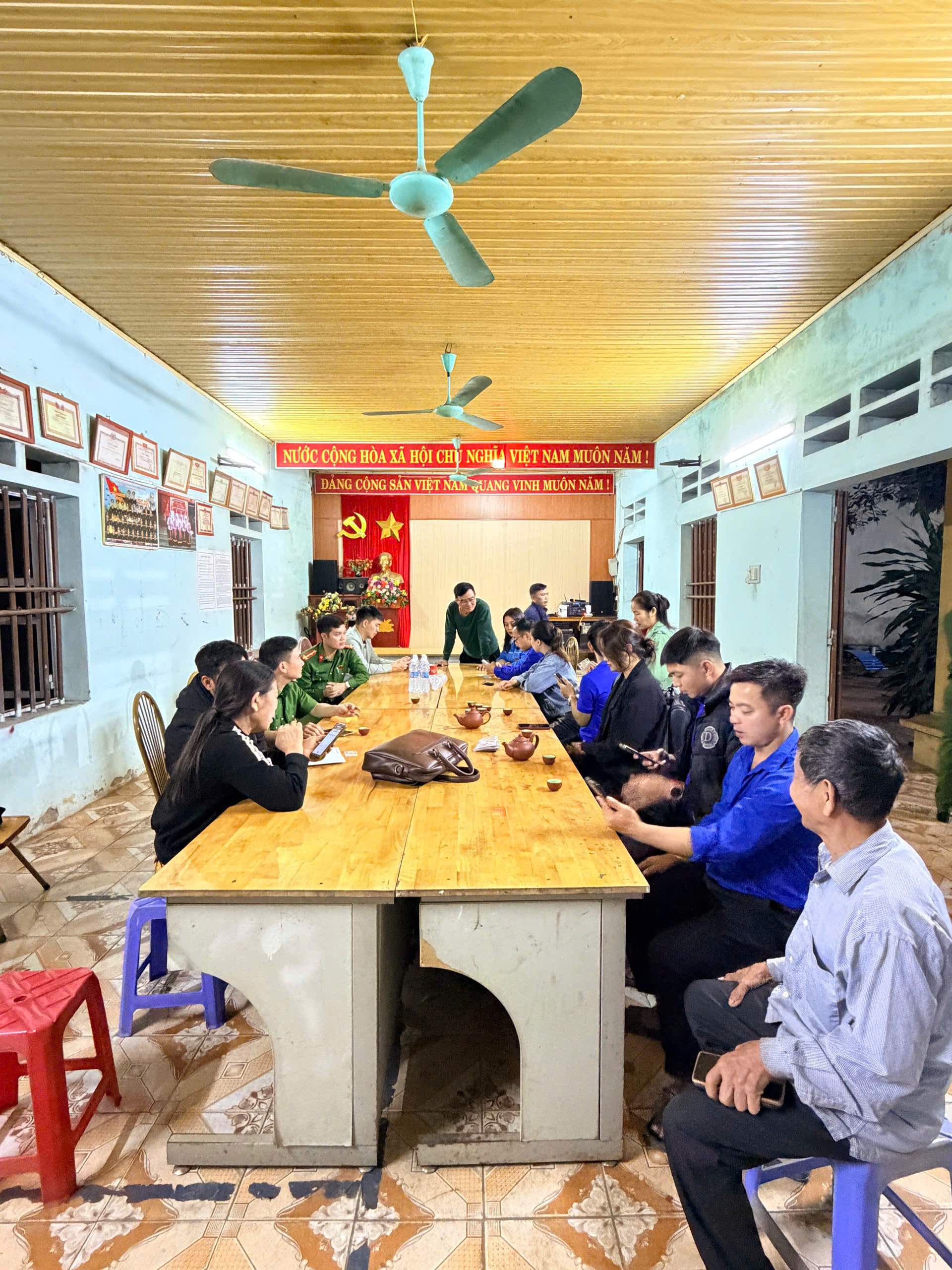 Thực hiện Đề án 06 của Chính phủ về phát triển dữ liệu dân cư, định danh và xác thực điện tử phục vụ chuyển đổi số quốc gia, tối 04/11/2025, Công an xã Hoàng An phối hợp với Đoàn Thanh niên xã tổ chức buổi làm điểm hỗ trợ người dân thôn Lau thực hiện tích hợp các loại giấy tờ cá nhân như Giấy phép lái xe, Thẻ bảo hiểm y tế vào ứng dụng định danh điện tử VNeID.
