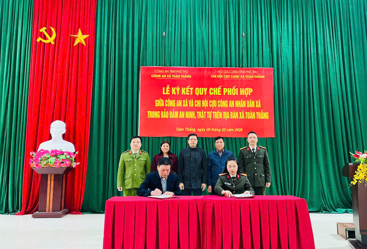 Nhằm phát huy vai trò, kinh nghiệm của lực lượng cựu Công an nhân dân trong công tác giữ gìn an ninh cơ sở, chiều ngày 09/02/2026, Công an xã Toàn Thắng đã tổ chức lễ ký kết quy chế phối hợp với Chi hội Cựu Công an nhân dân xã trong công tác bảo đảm an ninh, trật tự trên địa bàn.